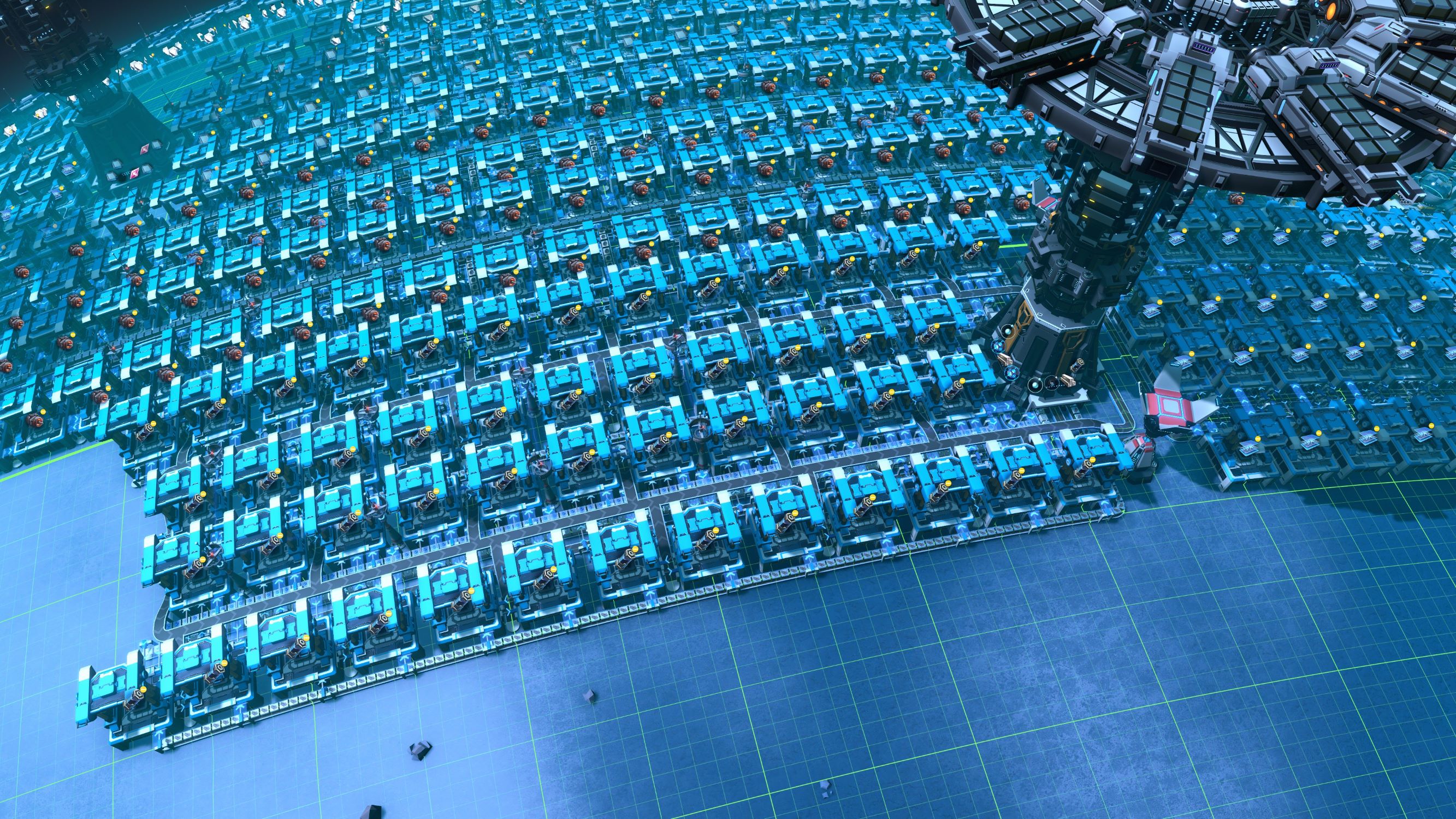 Generates 6/sec. Actually this is a 21x55 tile, but it fits in nicely with my other 20-wide tiles, because almost all of them are actually 19-wide. So the only restriction is that you shouldn't place 21-wide tiles adjacent to each other N/S. Also, since antimatter rods are a 4-in, 1-out recipe, there is no tower slot available to import warpers. For this reason, one tower input has been left unused so you can run a belt from a nearby tower.