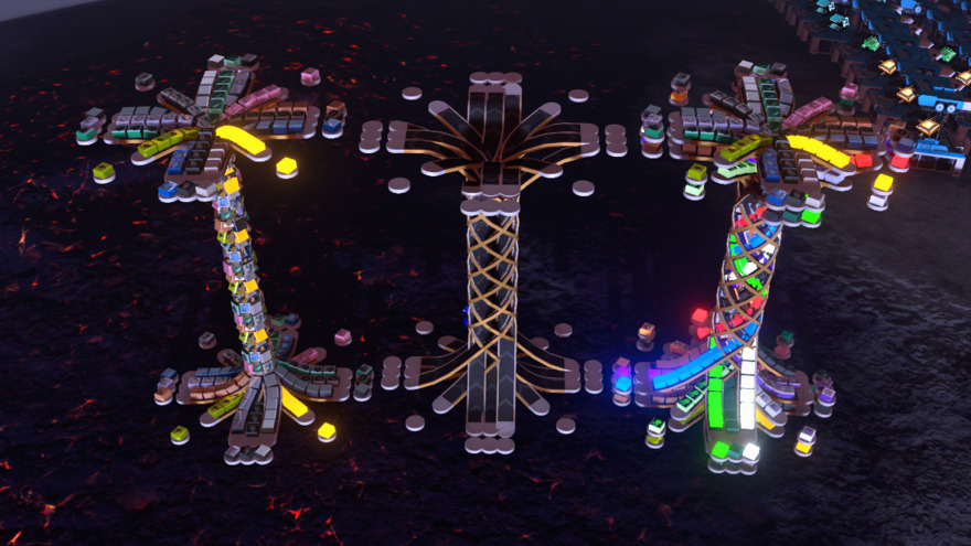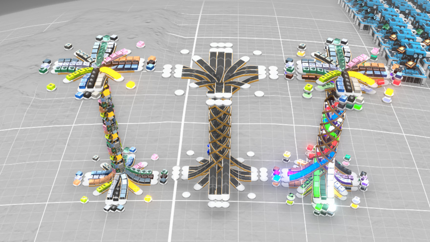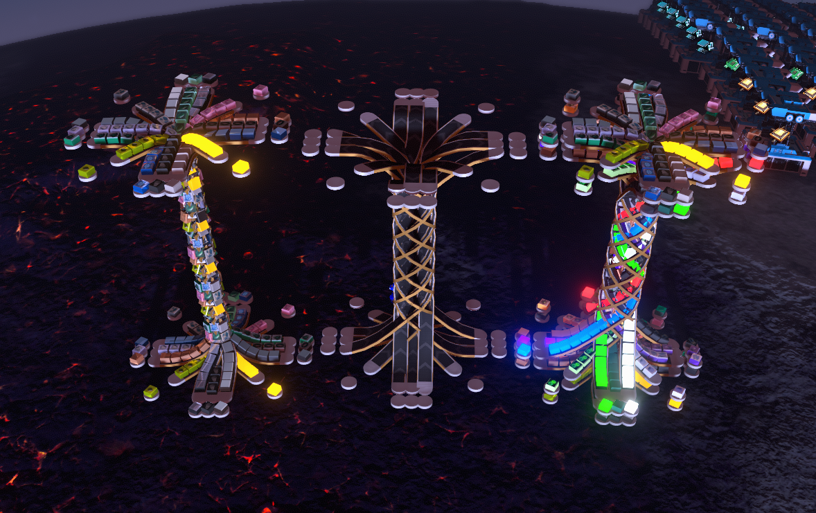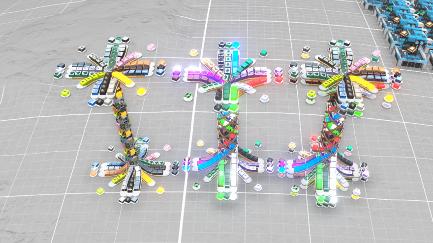 so, the last update to 20 was crazy, enough, I was so mad at myself for not thinking of some of those solutions. I took those solutions to the extreme and even made them look better. the spiral no longer has the vertical section cutting through it while both doubling the belts in those lanes, and following the spiral motif from the outer ones. (watch carefully as 2 different items can flow easily through what looks like one lane)