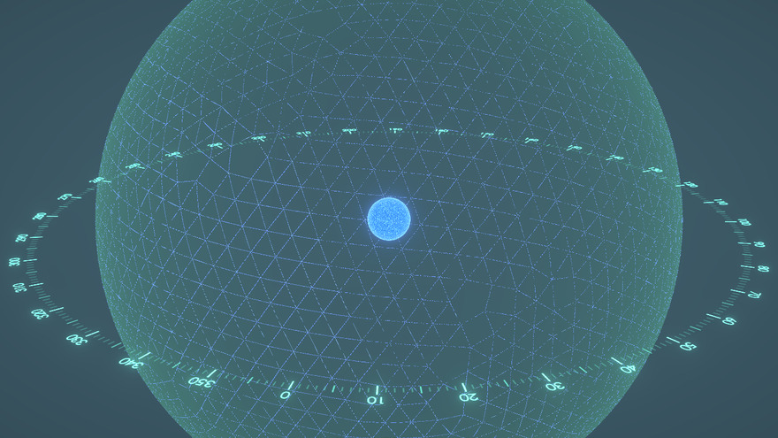 2724 Nodes sphere layer with only the nodes and frames, no shells.
