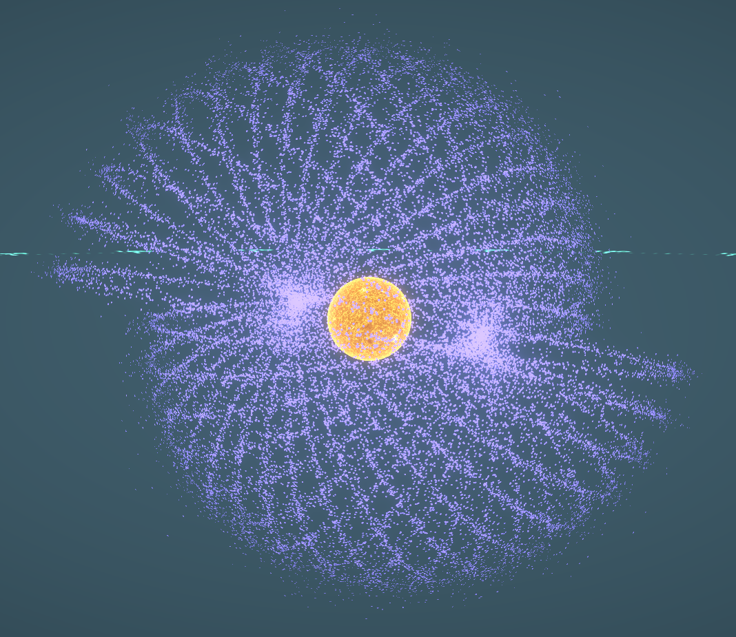 A swarm setup that starts from 4400m with 0 degrees orbit inclination incrementing by 100m radius and 10 deg. inclination with a maximum of 180 deg. It generated a stunning spiral swarm that I had thought to share with you all!