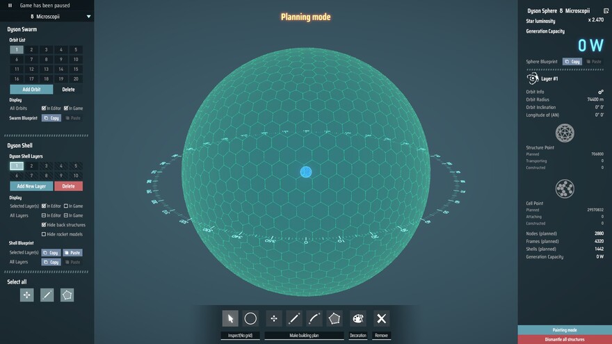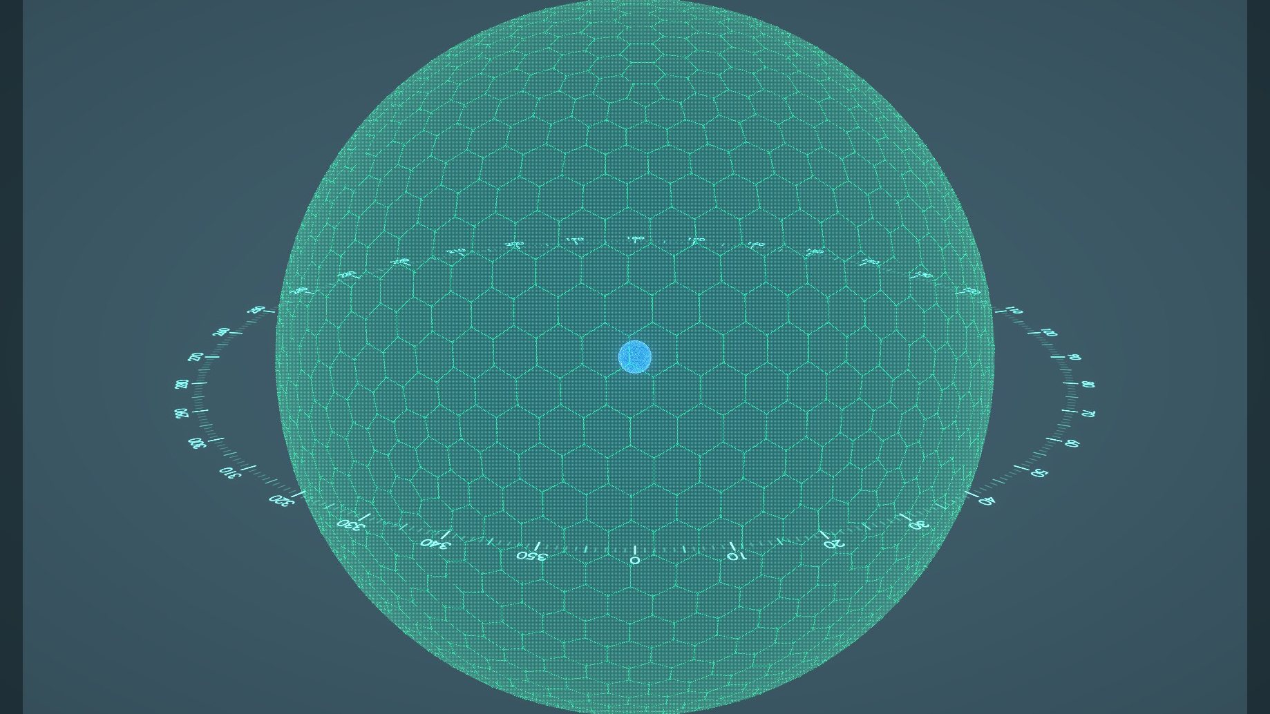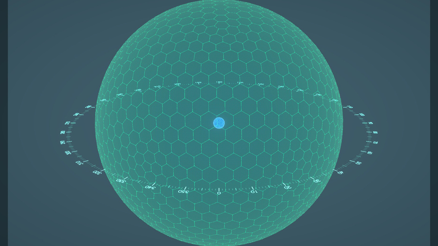 A high-efficiency Dyson Sphere shell featuring a classic hexagonal "honeycomb" pattern. This design combines the maximum possible node count (2880) for high power output with a clean, aesthetically pleasing geodesic structure.
