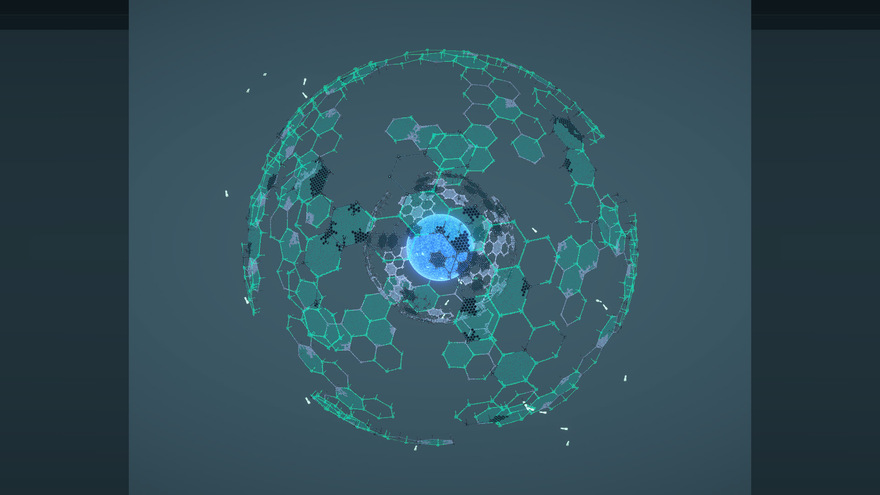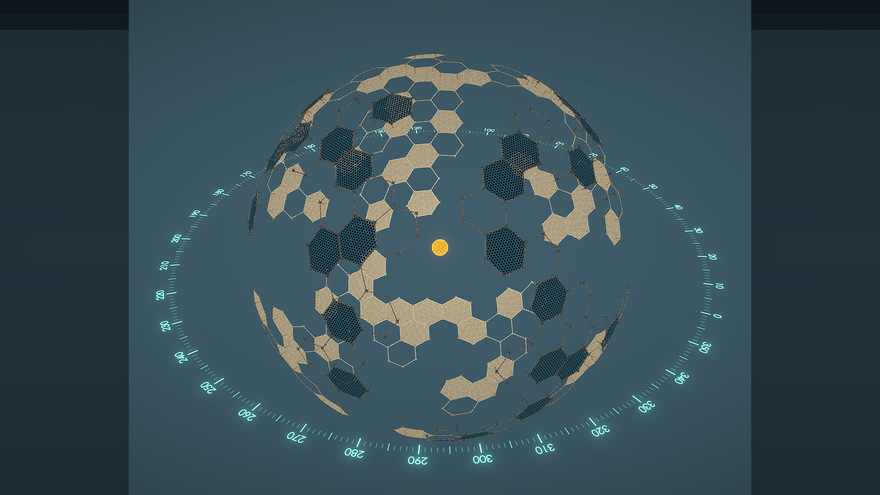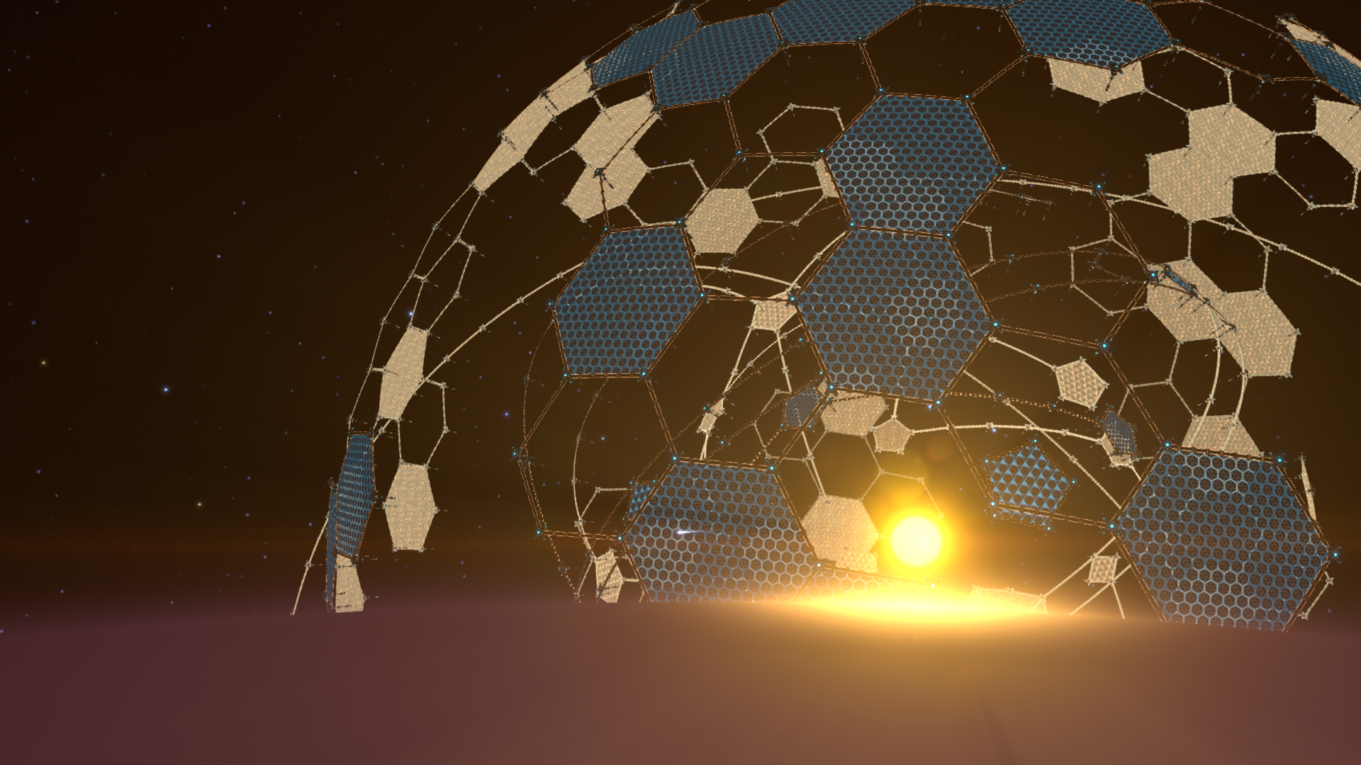 One of my often used Dyson Shell Layers. It contains a lot of loose bound hexagon shapes - some filled, some empty. The layer fits very well in existing designs - as well as multiple times with some difference in orbits and radius. I got inspired to create it by one of the menu backgrounds - I attached a screenshot of it.