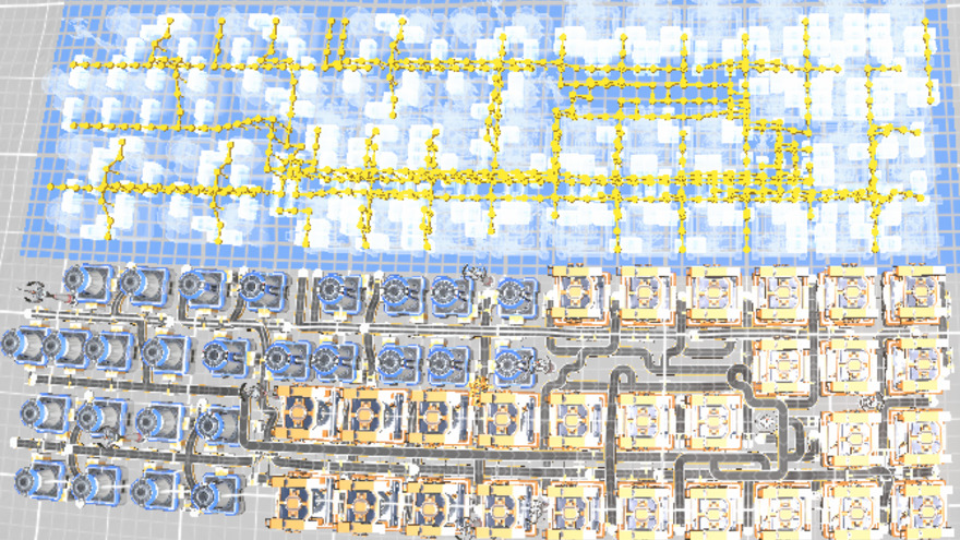 Plug in the inputs (Only needs Iron ore and Copper ore) and the output (belts) and after the wind up it will produce 120 Blue Sorters per minute.