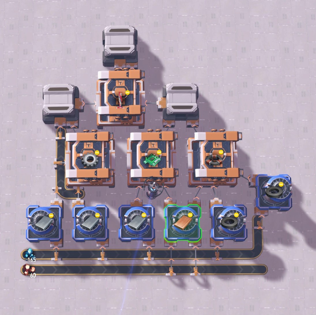 Early game pre-BP mall starter. Makes intermediates for assembly by mecha or with the fourth assembler in the blueprint.