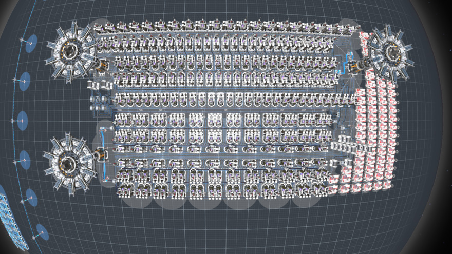 Fail Guards by priotity: 1) Anti-Hydrogen excess, first attempts send it somewhere else, if fails - start burn it. If burn rate capacity breached, then alarm get triggered. 2) Zero or Insufficient rate of Coal: will switch to Normal Heavy Oil production with reliance of Hydrogen to be removed to elsewhere/burnt, if not possible then stockpile resources. First warning via Coal Icon, then Normal Oil Recipe if production rate exceed 3000/m. 3) Insufficient Proliferator, may result in disbalance, complete zero will force notification. System will continue work because initially designed to do 3600/m and were upgraded after that, so failure due absence of Proliferators is not possible - just warns if system is inefficient.
