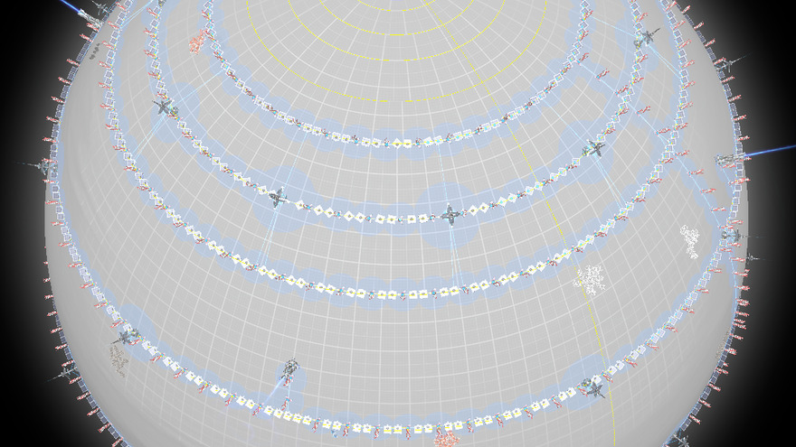 Create an energy network spanning an entire planet, utilizing wind turbines and solar arrays. To safeguard against potential threats, signal towers and a planetary shield are also erected. The shield generators are strategically positioned away from the central area to minimize interference.