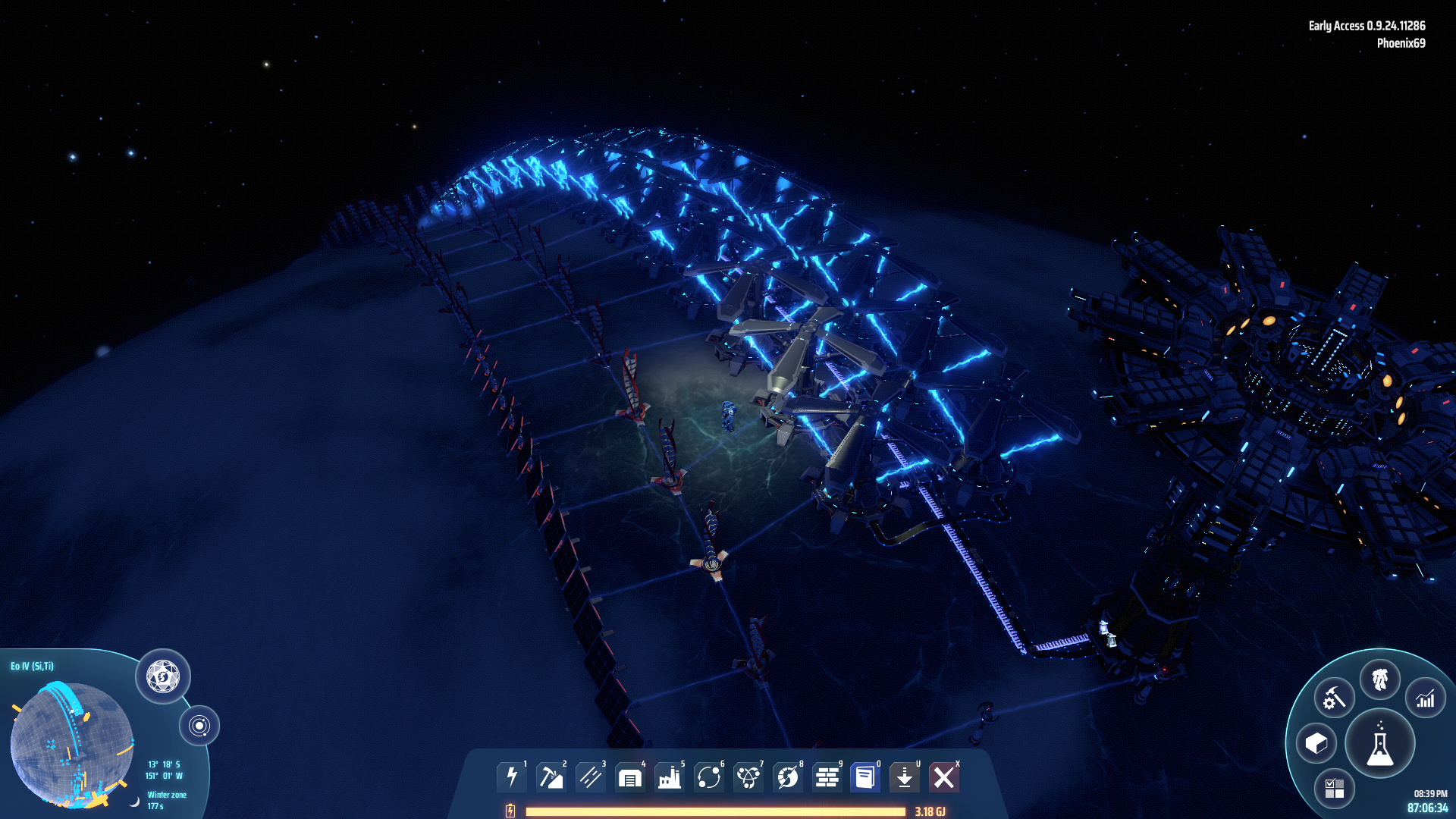 This factory calls in charged accumulators and discharges them using energy exchangers. Placed near equator.