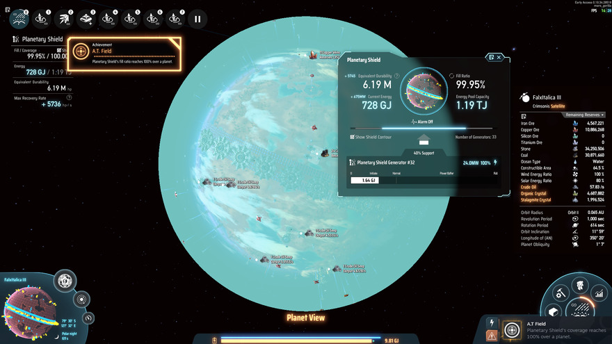 DISCLAIMER: NOT the most optimal shield placement for 100% planetary coverage, nor likely not the most optimal for this achievement. This is just the solution that works for me.