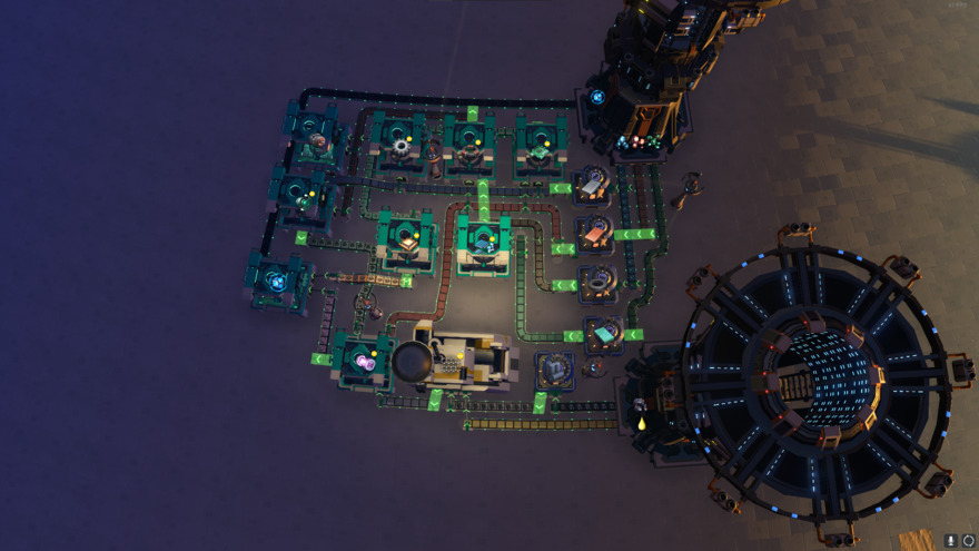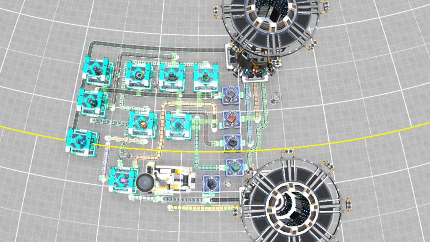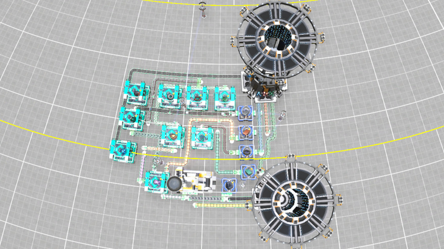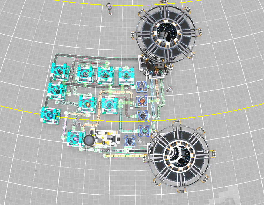 An early game sphere factory, that uses MK.2 belts, sorters and assemblers.