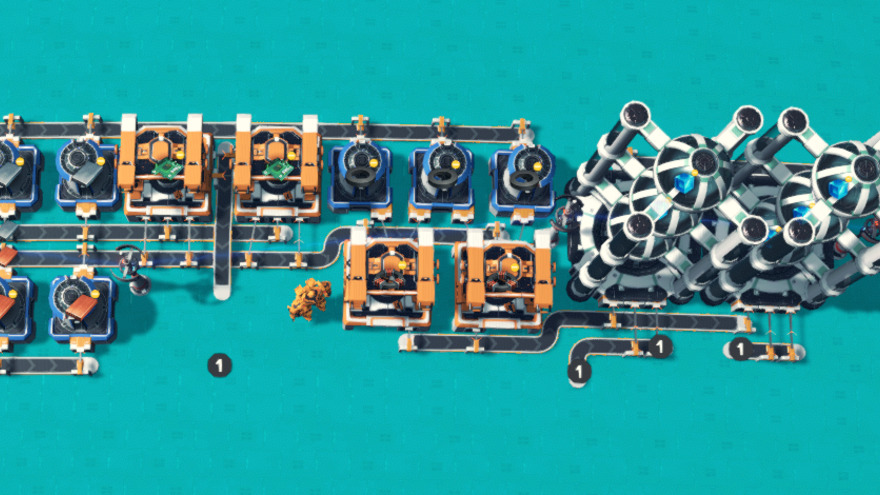**Connect the belts indicated by "1" (150 blueprint limit)**