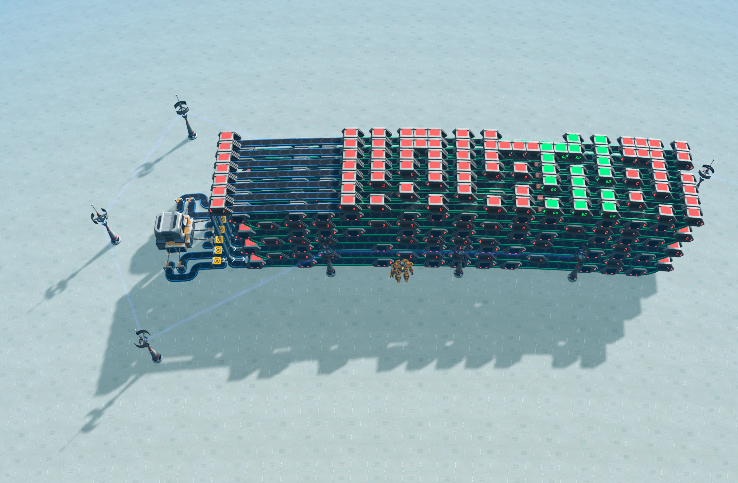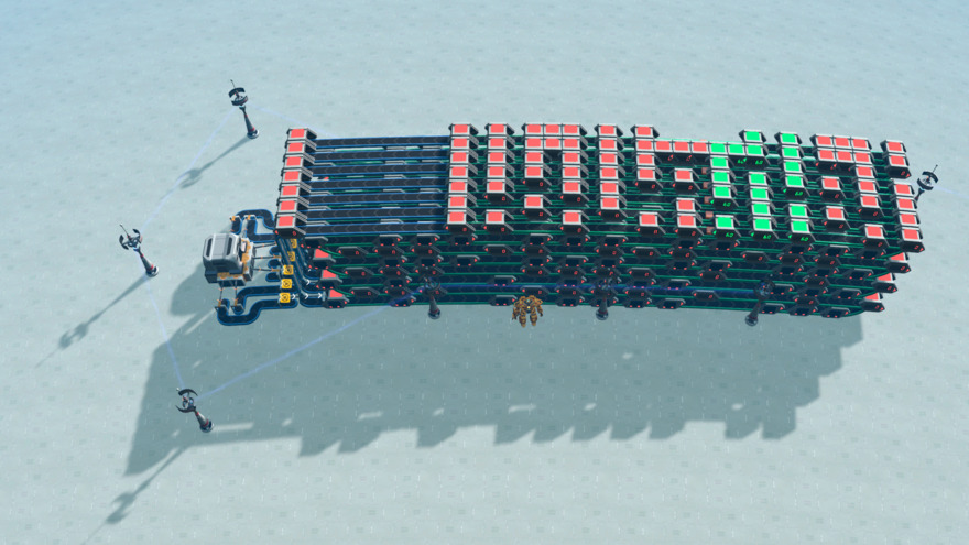 To play: First provide power source. Then load the box with 7 items of your choice and then place a power pole to power to start playing. The 7 items should be in the 'start position' before the white sorters. Then you power the white sorters so all items go into the loop at the same time.