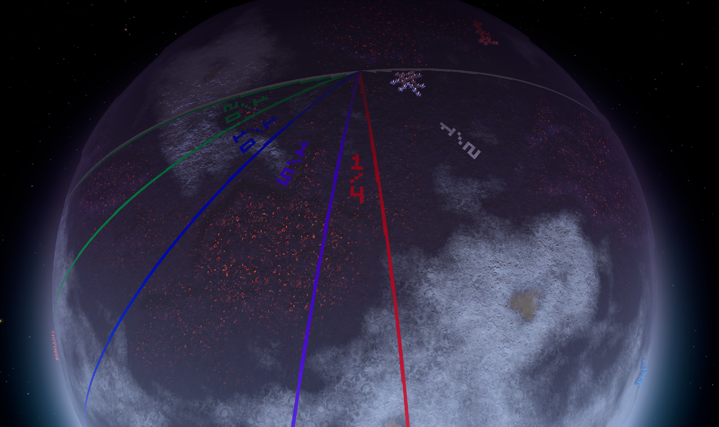 This blueprint visualizes the commonly used sizes for a pizza slice. Basically, at the equator there are 1000 tiles, so commonly used fractions of 1000 are used as planet slices for blueprints. I've put in here the slices for 1/20, 1/10, 1/5, 1/4 and 1/2 hemisphere.