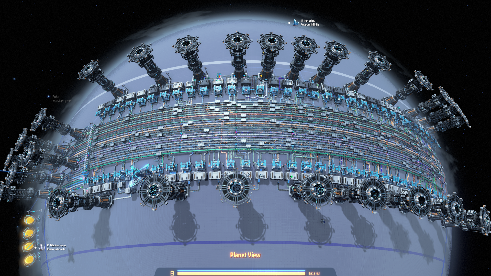 - All Buildings on menu crafted + 3 Logistics Drones and Placeholders for 3 new Dark Fog Buildings. DF assemblers have been marked with symbols on nearby conveyors and placeholders ready for when you discover the items and add them to your supply chain. - Set up on PLS for local resource demand/supply. Required resources are shown near the resource header on the left - Should be built near the equator due to closeness of top most PLS and overall size. Notice the closest most PLS on the top and place those near the equator. You can vary the distance to the equator quite a bit if you want a wide solar panel belt. - Upgraded to Level 3 - No logistics distributors (drone hats) for the boxes since I utilize PLS for distribution system. PLS Polar Cap with distribution drones blueprint is available. - I've triple checked it by building it on a different save, it's fully functional and ploppable.