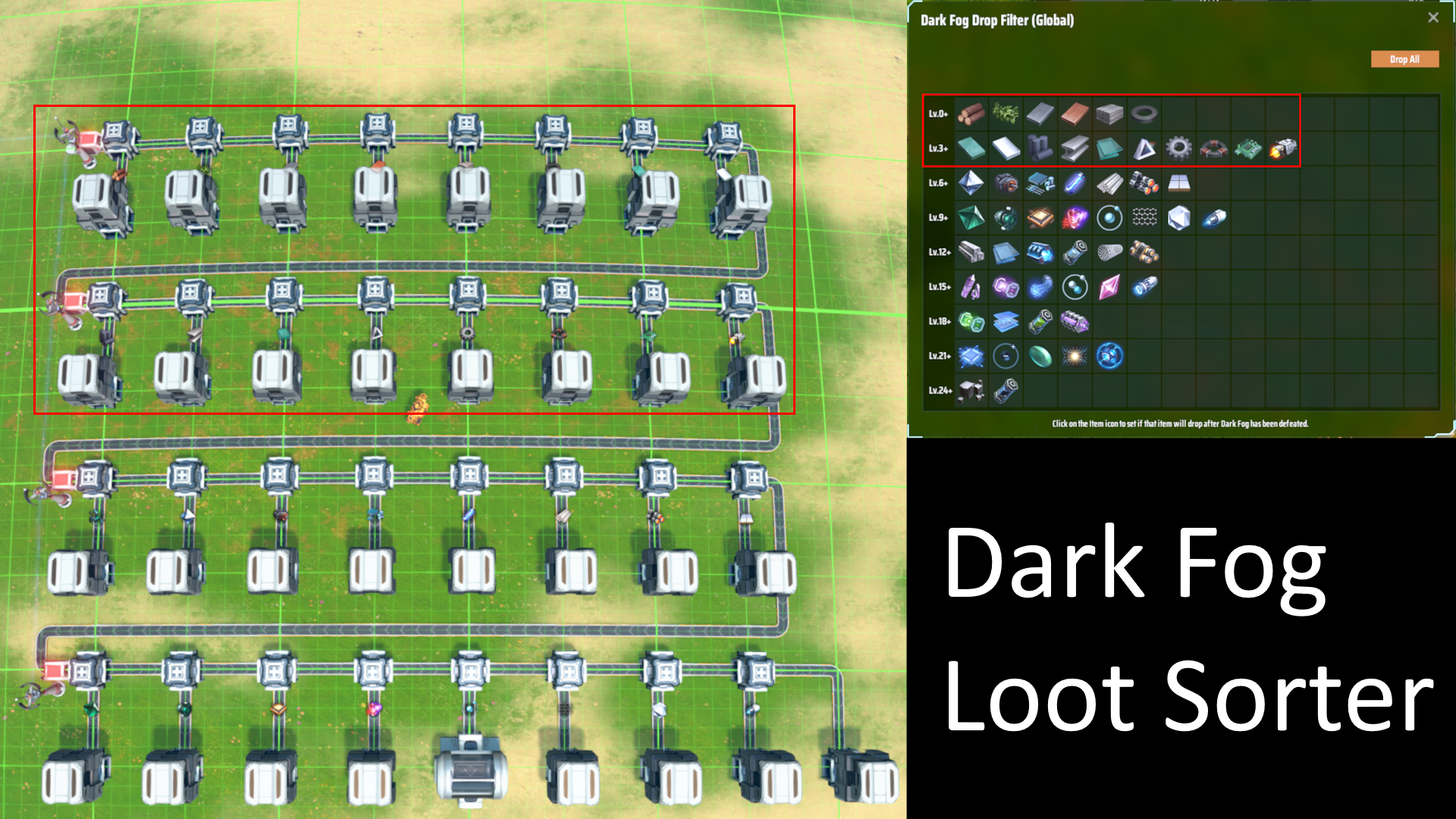 This blueprint will sort through all of the Dark Fog drops (Lv.0 - Lv.3+) collected from Battlefield Analysis Bases:
