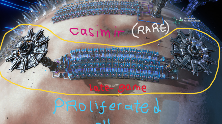 Late-game Reason for making this: "not many blueprints is this dense and compact and properly optimized and proliferated." - Late-game would need like 4 of these to keep up but the difference is that it won't lag on resources like some big builds. - Belts can only max cargo stack of 4 from tech limit. So this is the issue in make it too long because it becomes inefficient. - Mine is a square thin build. Best part is that it is efficient. - 8 optical grating crystal, 2 graphene, 12 hydrogen is not joke of a recipe.