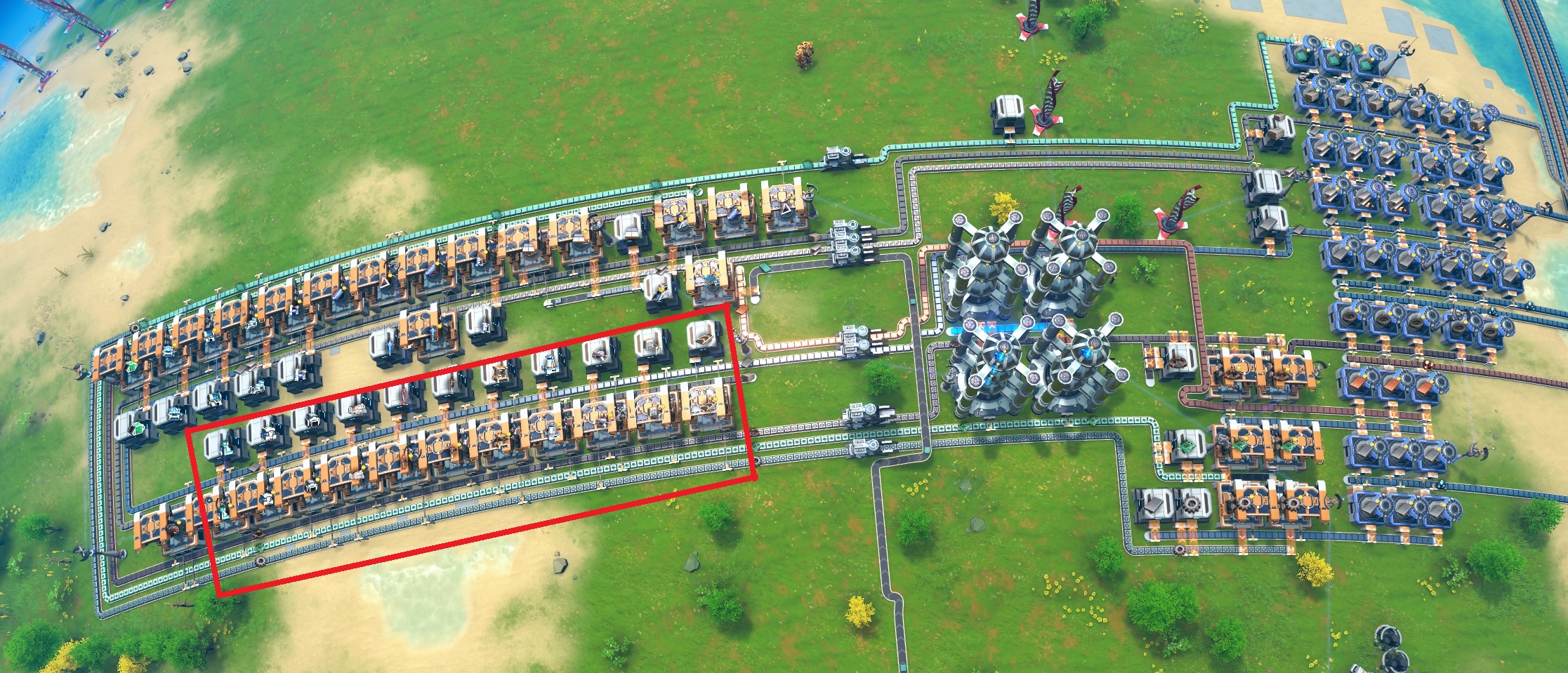 Now that you starting base is built and producing and it's time to start making the mall. This is very similar to the one from The Dutch Actuary but it is in reverse order to help reduce the amount of spaghetti.