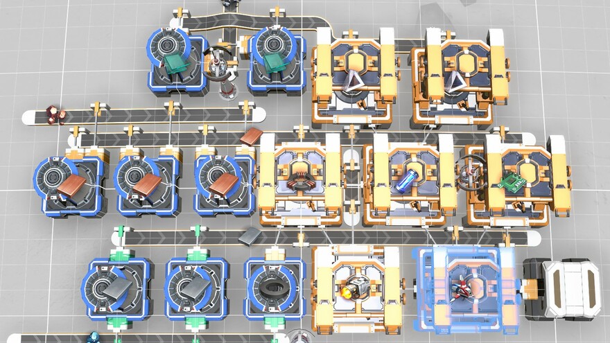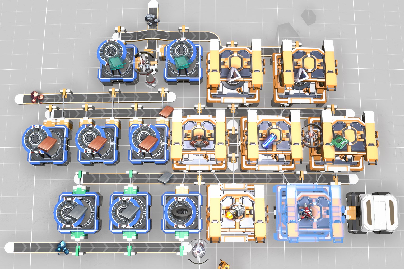 Part 1 of Tier 1 combat components using raw resources. Gets you prepared for Dark Fog in a hurry, just hook up the belts to the inputs (Stone, Iron Ore, and Copper Ore)