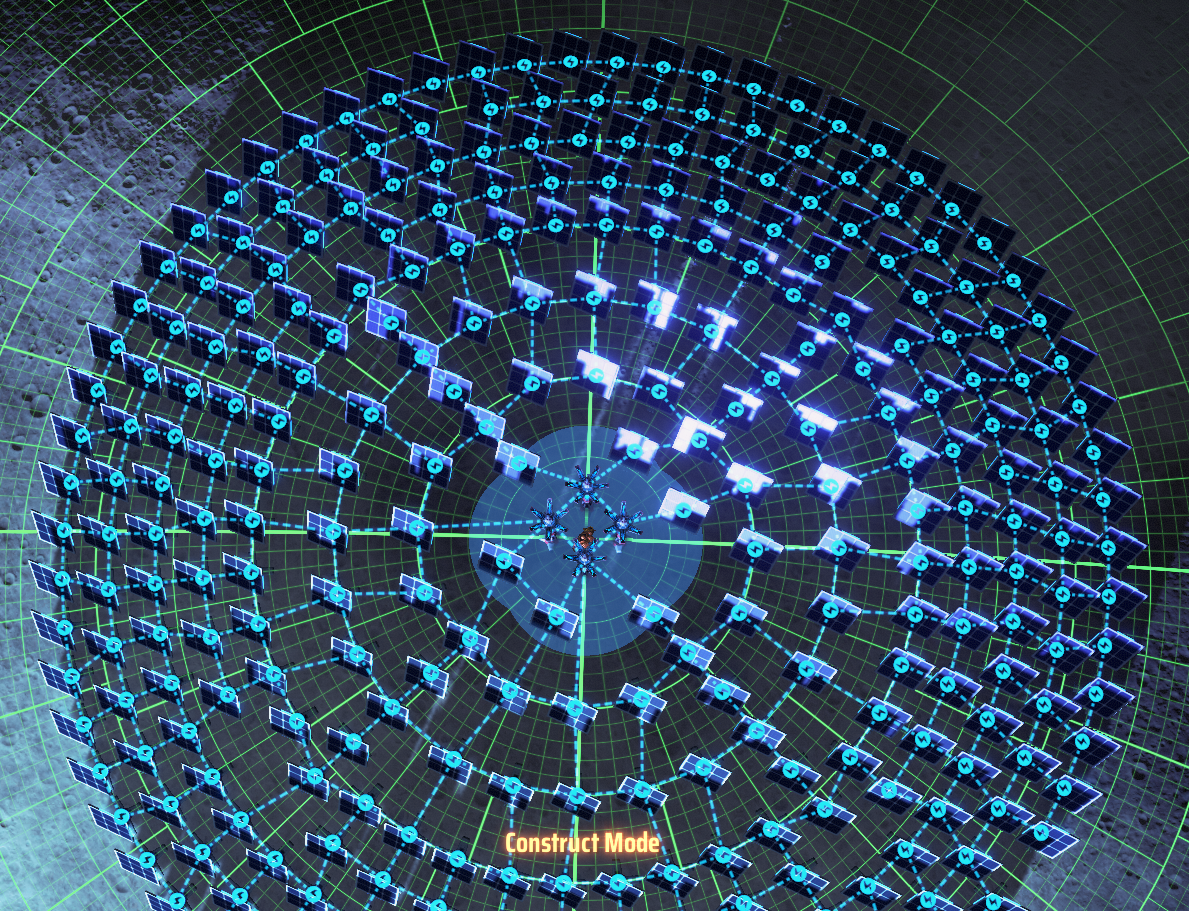Mission Statement: Provides about 100 MW per pole and rapid charges your mecha so you can quickly colonize once you have Mass Construction 2 and the ability and/or motivation to travel to new planets like your Mom making you a sandwich driving you to Soccer.