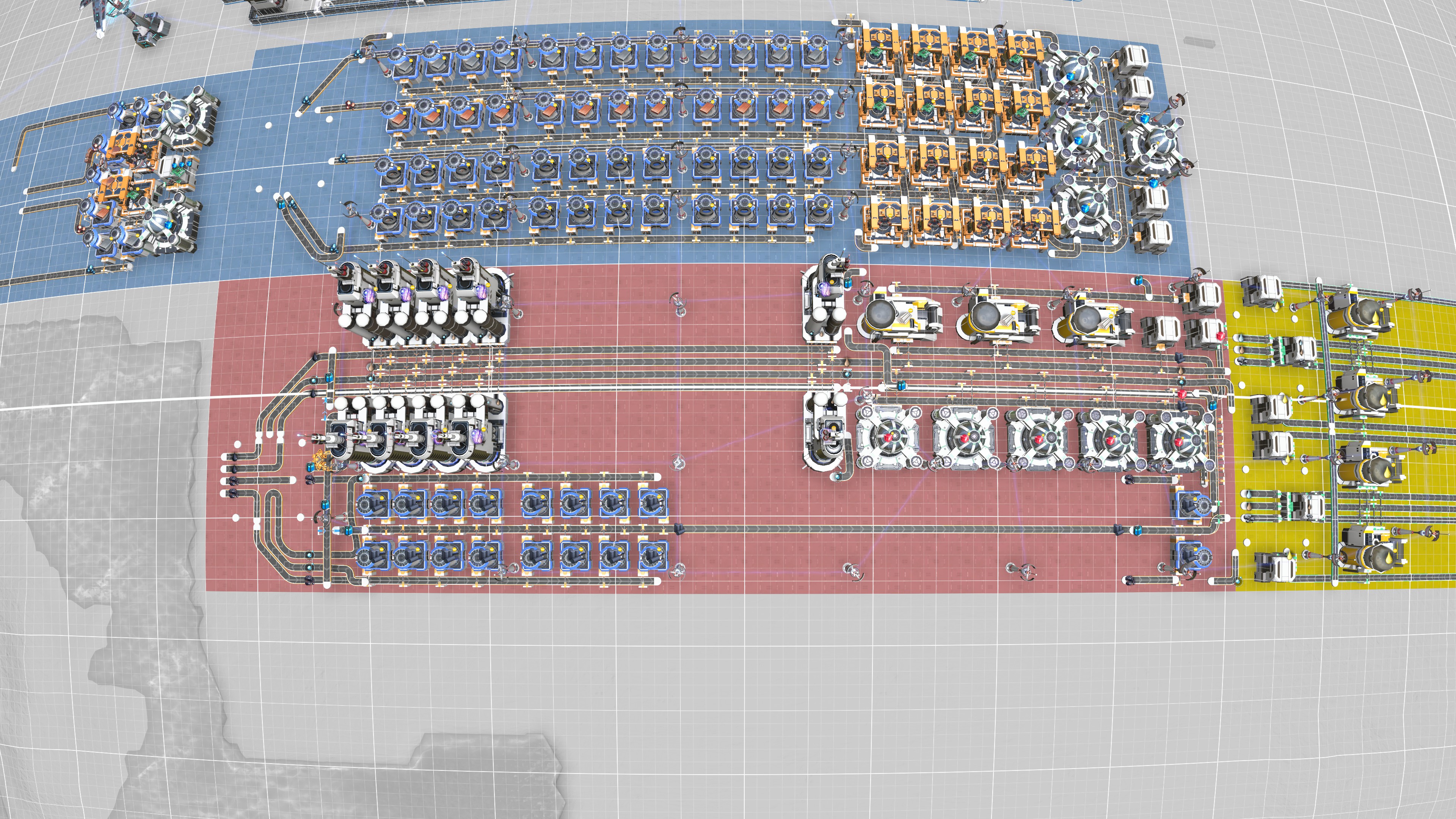 - Only Requires Crude oil & Coal. (Excess Refined oil must be used externally in manufacturing or power Generation, I prefer creating Early Sulfuric acid) - Fully Upgradable (continue adding the missing buildings, then upgrade when able. There's also space available for PSL when unlocked). Can last to endgame.