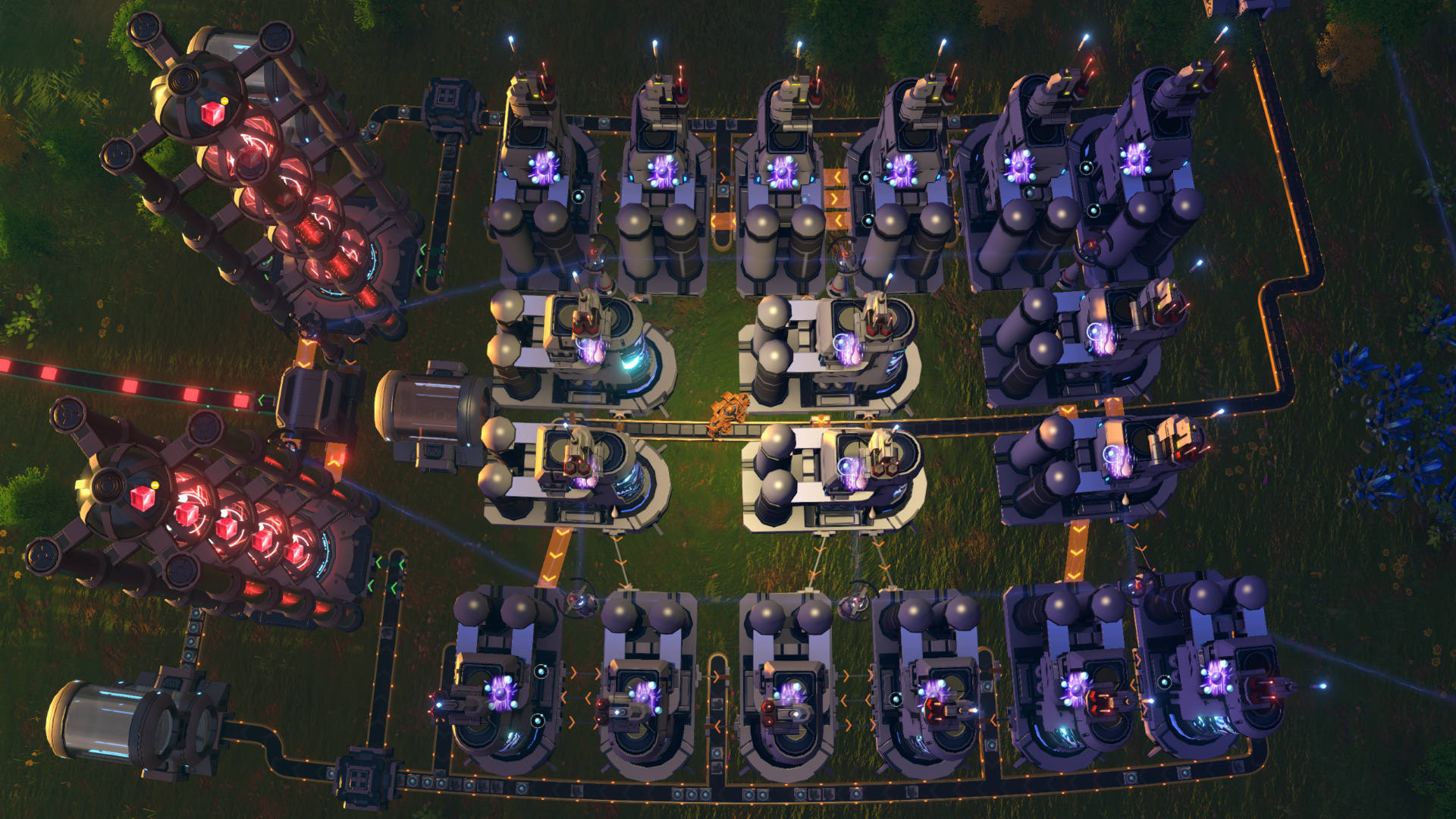 Early stage red cubes. For X-ray Cracking research, import Energetic Graphite. After, the extra sorters from the main refinery can be deleted and left to work with secondary refineries. the refineries will not jam even in case of complete filling. the pairs can be tiled for increased production. fits nicely in the 5 square tropics regions notes: - deal with extra Hydrogen and Refined Oil as you wish (burn, use in other places) - keep the sorters at green to avoid jamming - the blueprint is a tweak from an old one of Nilaus