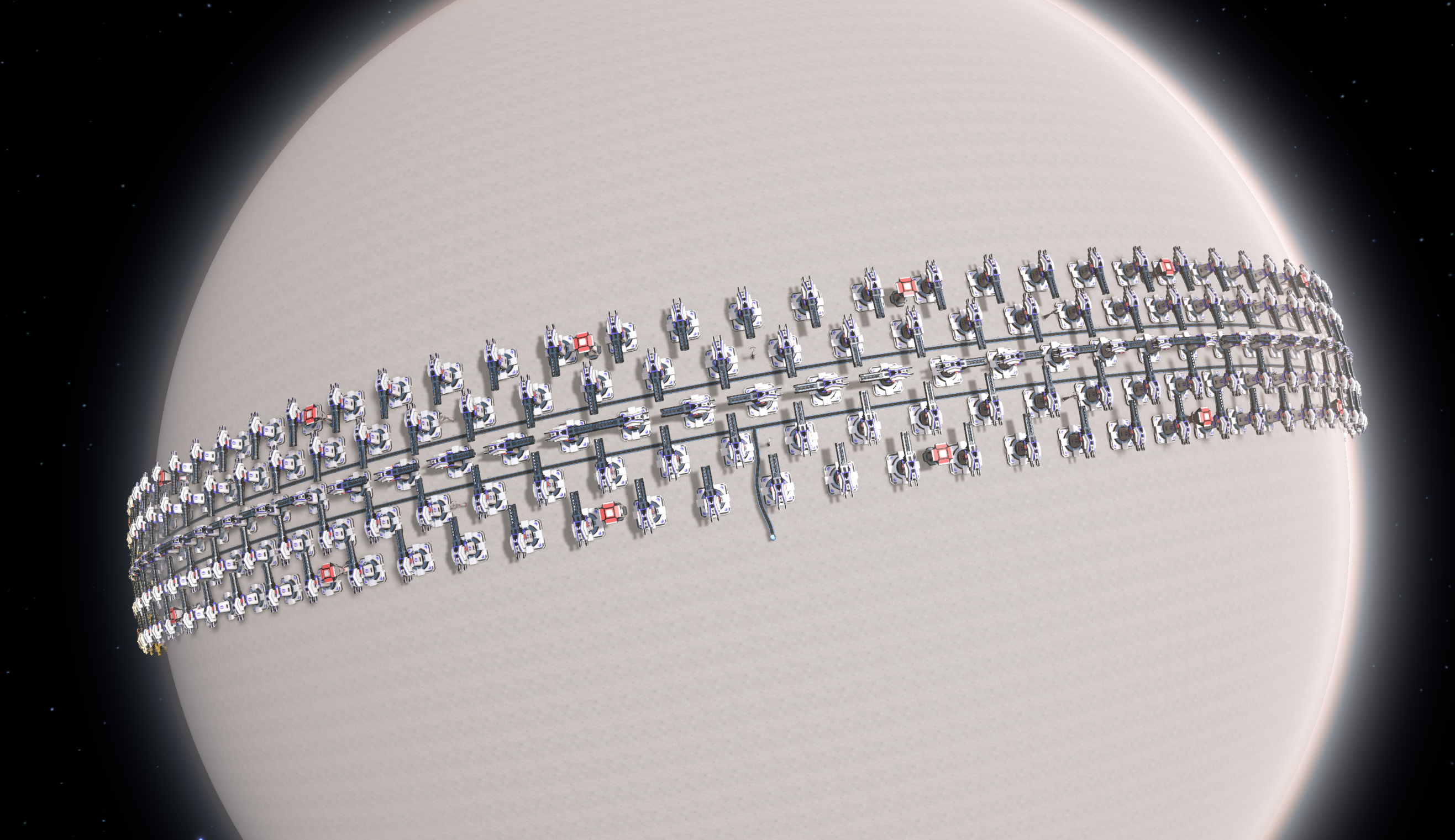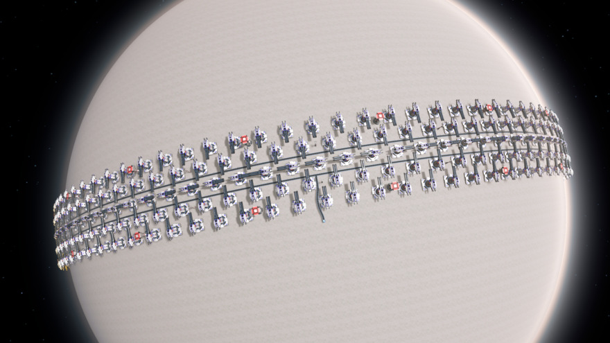 To replace do the following: 1. remove everything between the inner solar sail belts near the equator, i.e. the rocket launcher module and power poles in between the belts. BlueprintTweaks F3 area-delete is useful for this. 2. Paste this blueprint and make sure the solar sail belts are attached at the icon.