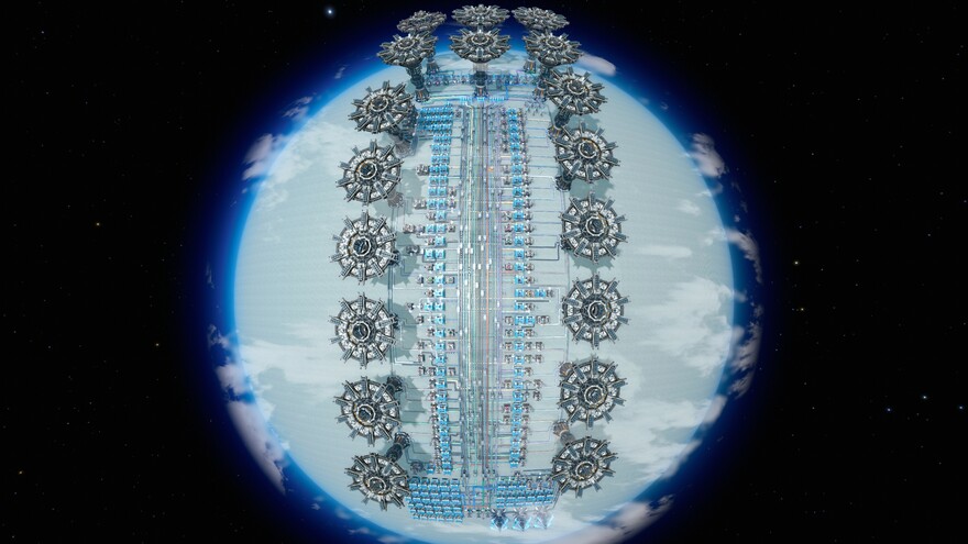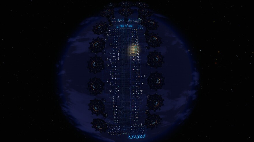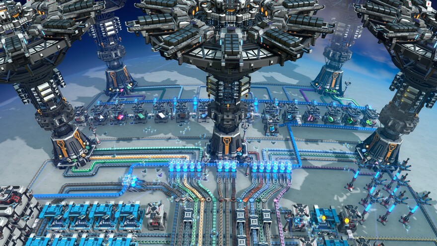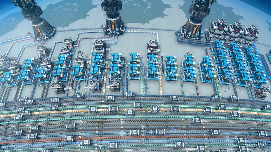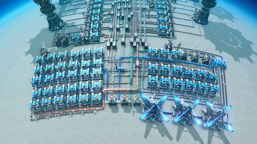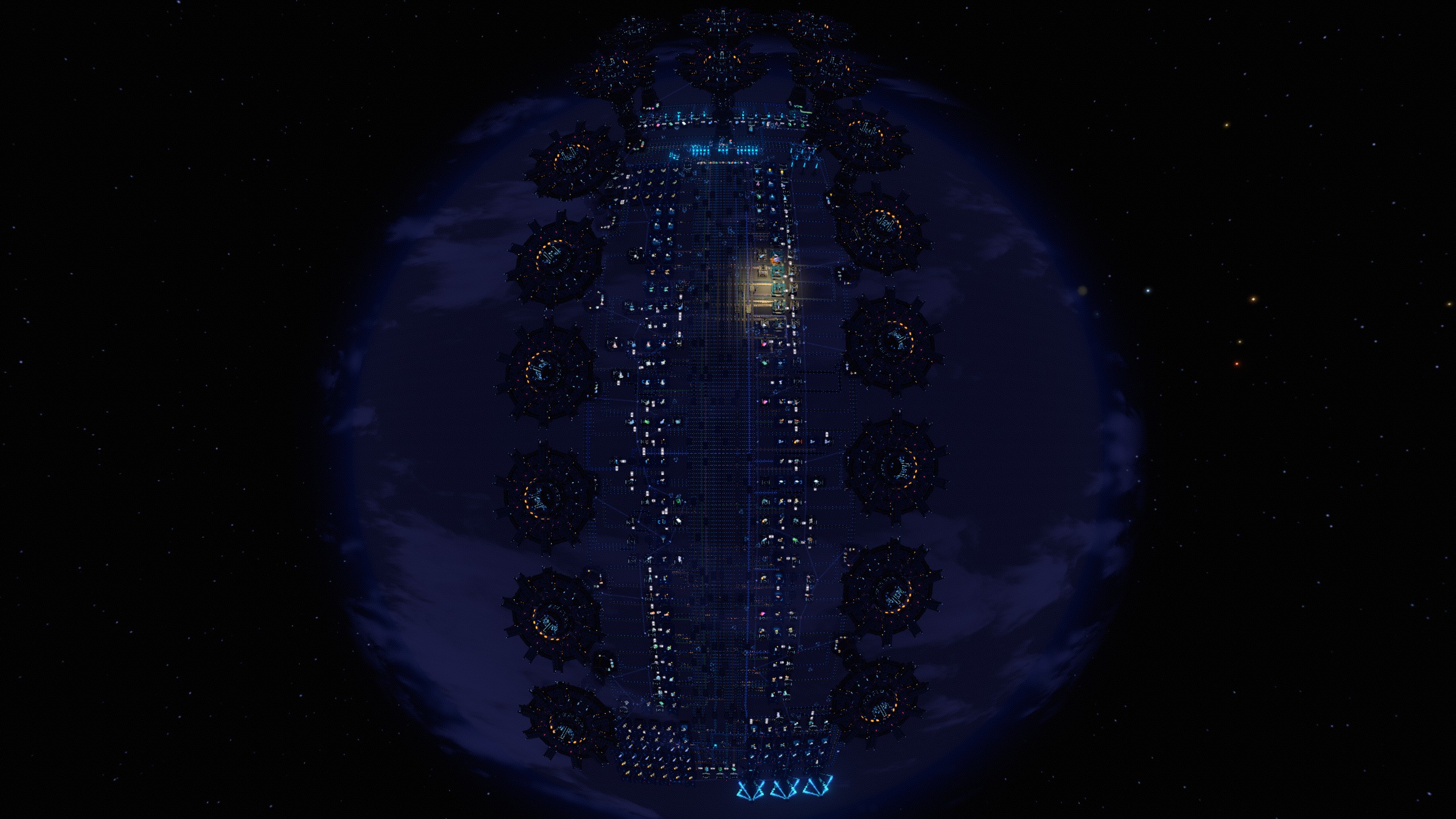 IMPORTANT FOR PLACEMENT: The blueprint aligns itself correctly north and south. For east-west orientation, there are 20 longitude lines that cross the equatorial to continental zones without breaking. For best results, place the center line of this blueprint on one of them. It does not matter which one. If you place off center line, you may have to reconnect some of the belts for the main bus at the north and south end, but after that should be good. As posted towers are set to 1 stack so not to waste material, when first posting you might want to increase that temporarily.