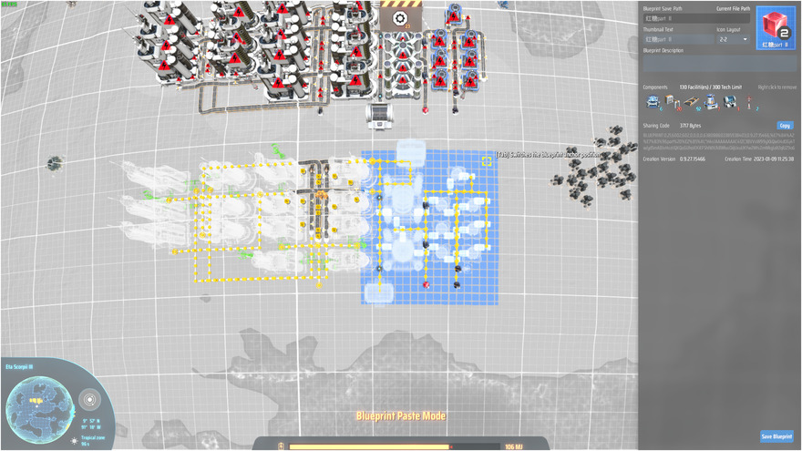 备注: 1.务必确保输送精炼油和氢的两条传送带与红糖1部分传送带能够对接 Please make sure conveyor blets supporting refined oil and hydrogen are connected with part 1 2.需要输入煤炭 Coal is needed 3.研究站需要升级一次堆叠科技后,各额外添加两层,红糖理论产能为100/min When Vertical Construction lv1 is unlocked, add two Martrix Labs of each tower, only then it might reach 100/min 4.额外添加两层后需要将研究站的输入爪子升级为二级,并且需要再各添加两个二级爪子输入材料 When extra Matrix Labs are added, be sure to upgrade labs' input sorters to MK.Ⅱ and add two more sorters 5.氢和精炼油均需要额外消耗 Both refined oil and hydrogen need to be consume 6.点我的名字找第一部分蓝图 Click my name to find the other part of the blueprint