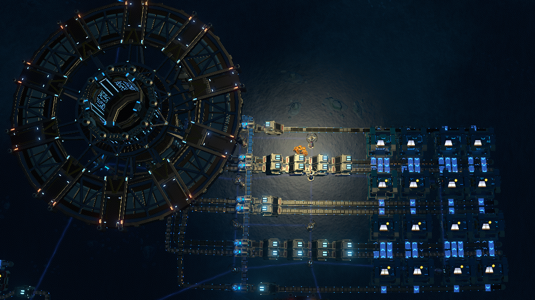 Foundations factory for end-game. Proliferated and ingredients piled for compactness. Also has mk2 chests with a logistics hub on it for ease of use for getting more foundations on the planet.