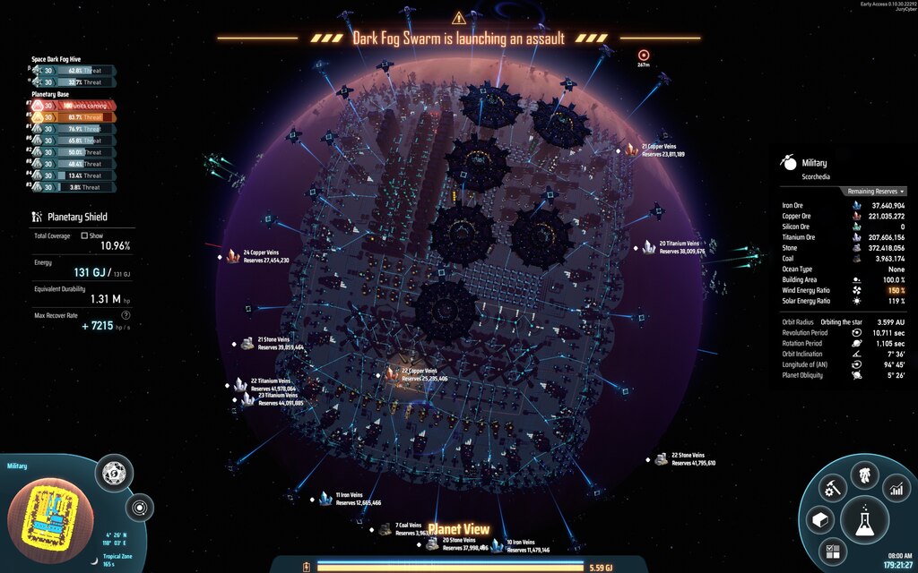It holds up to 105 GJ of energy and has 2 planetary shields for cover.