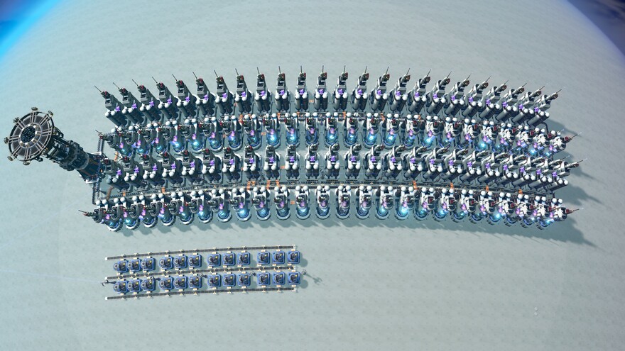 The design uses only mk1 logistics so it can be used as soon as the reforming refine recipe is available. It is fed with coal, but to get started it also needs an amount of hydrogen and refined oil - it will consume only a finite amount of those though, and will stop requesting those items as soon as all refineries have booted up.