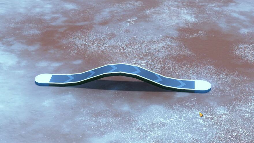 Mk. I conveyor belt ramp, set at one-half level height, over two spaces.
