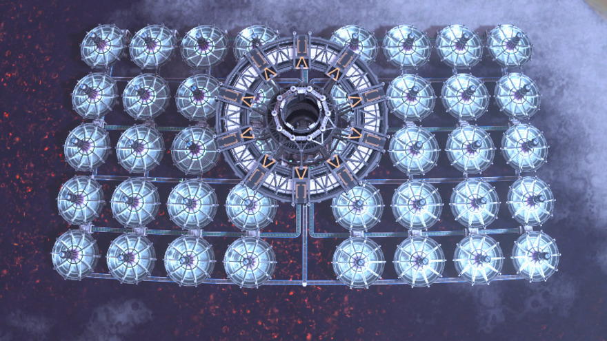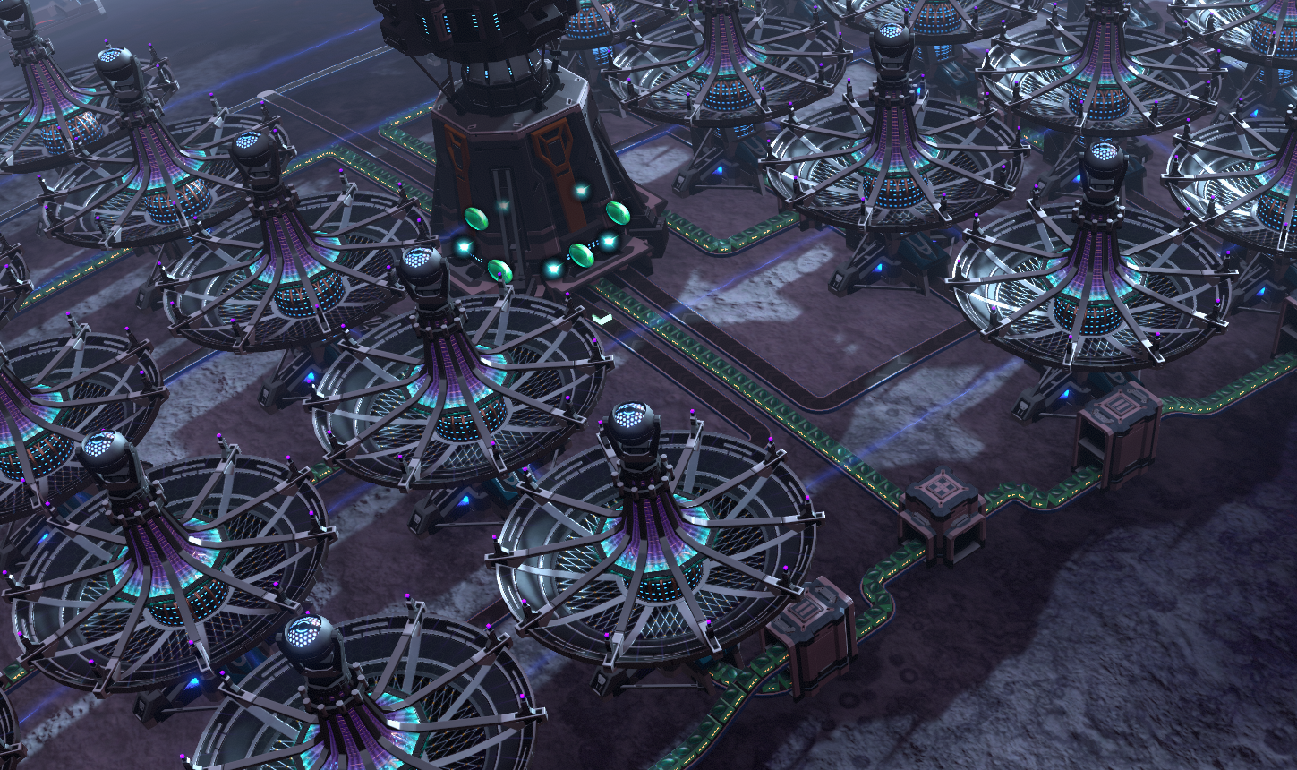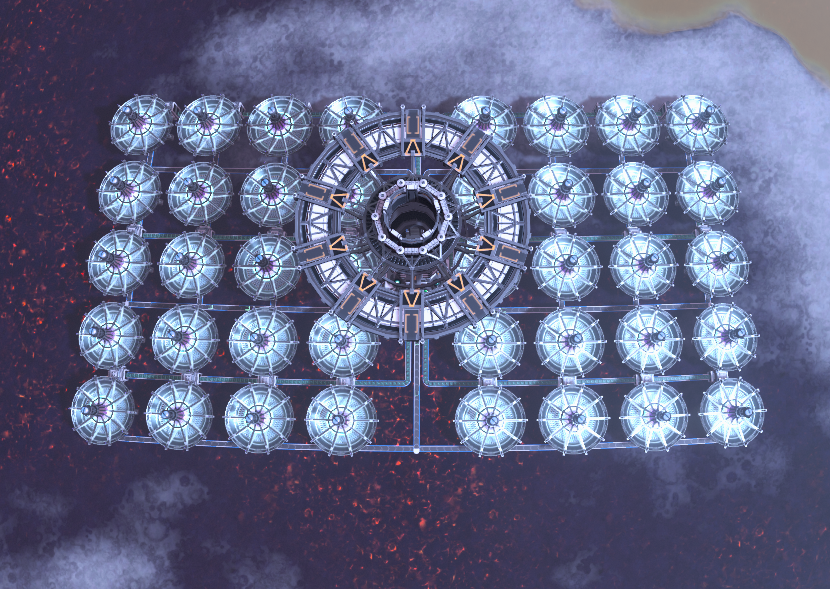 This version has 40 ray receivers with Graviton Lens boosting, the Graviton Lenses must be proliferated before being imported here. This blueprint is designed to go in the equator region and thus won't fit in other sections. However, since it is Borg-spaced (see below for more information) you can fit exactly 4 of these North to South within the equator region!