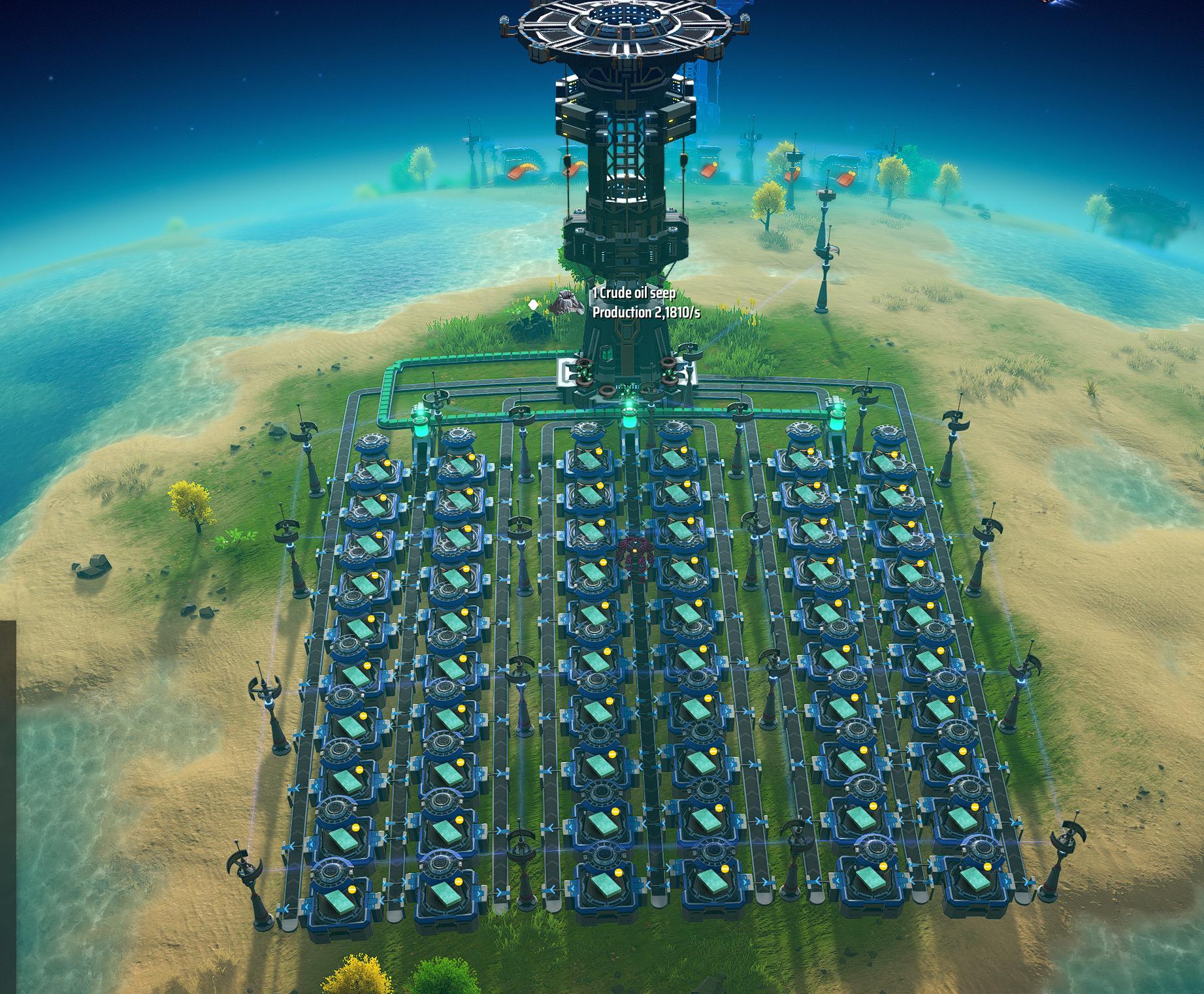 A Silicon smelting facility with a planetary logistic station, Tier 3 belts, Tier 3 sorters, blue smelters and Tier 2 (blue) coating. This is for the transition part of the game where you still do most on the local planet.