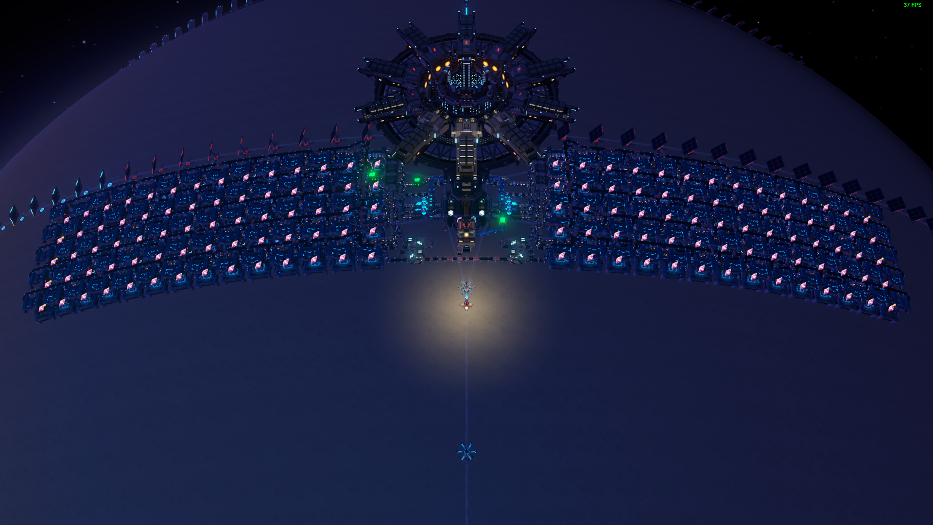 only 19 wide -> placeable up to polar region Proliferated, works at full capacity with "Logistics Station integrated Logistics" upgrade at stack hight 4. Proliferaton requested via ILS. Warpers requested via Logistic bots. Full belt compression and output TESTED -> True 3.750/min output