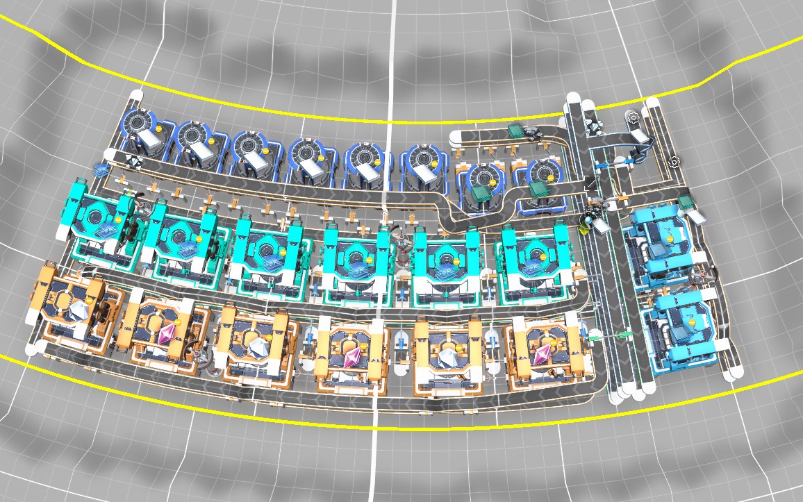 Tilable plane filter factory with belt looping. Duel raw/Ingot inputs. can be placed up to 70 degree latitude Version 2 uses no splitters and less crazy belt looping Upgrade of v1 https://www.dysonsphereblueprints.com/blueprints/factory-plane-filter-30-m-tileable-small-footprint 30/m output.