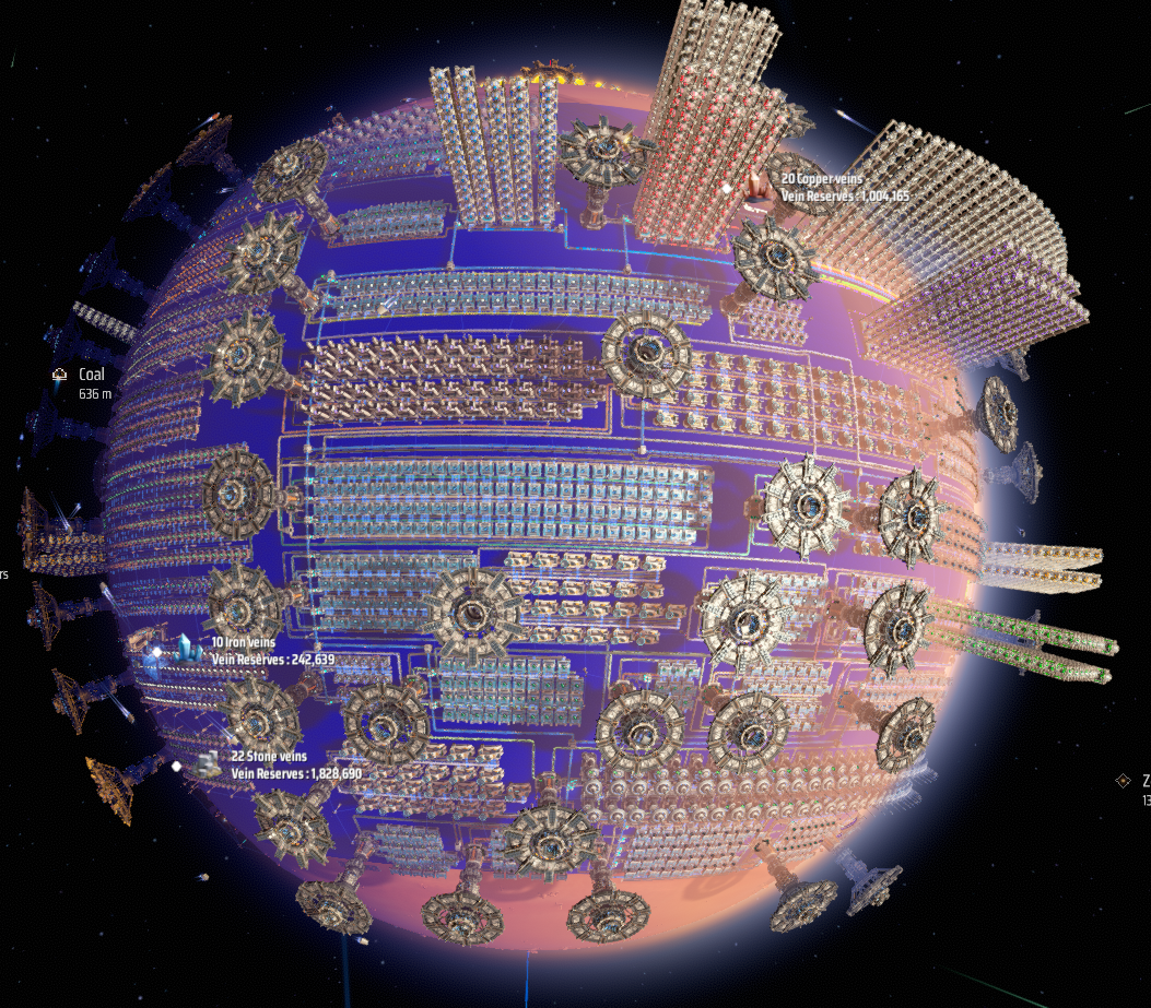 2250/min proliferated universe matrix science, including all smelting. Uses all rares except for unipolar magnets. Takes up almost half a world. Just add power and mining.