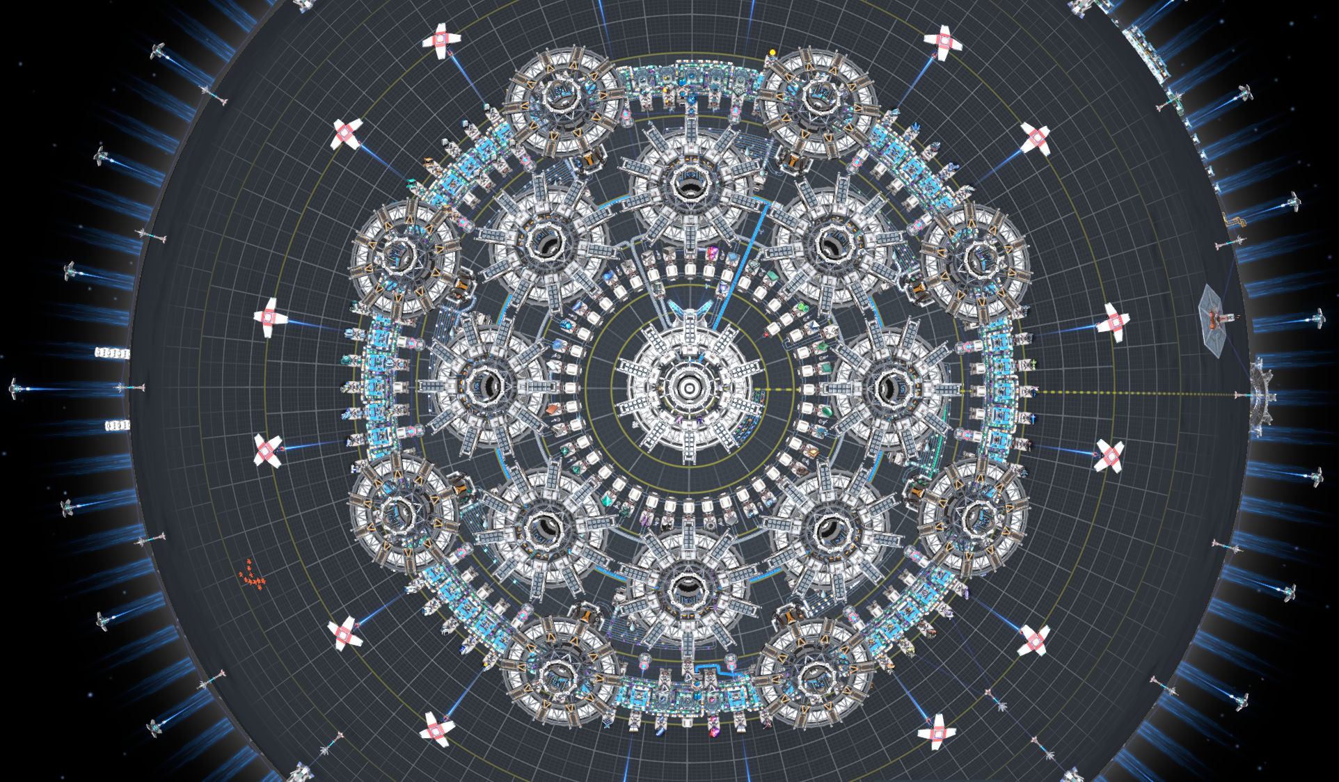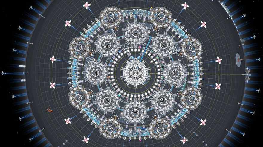 8 stacked belts of goodies for maximum production speed, small in-built intermediates and concrete production Central switch for easy control: just put a bit of water in the chest and then switch provide/demand to turn belts on/off Caution: don't put bots in a distributor if the autofill is turned off, can break things.