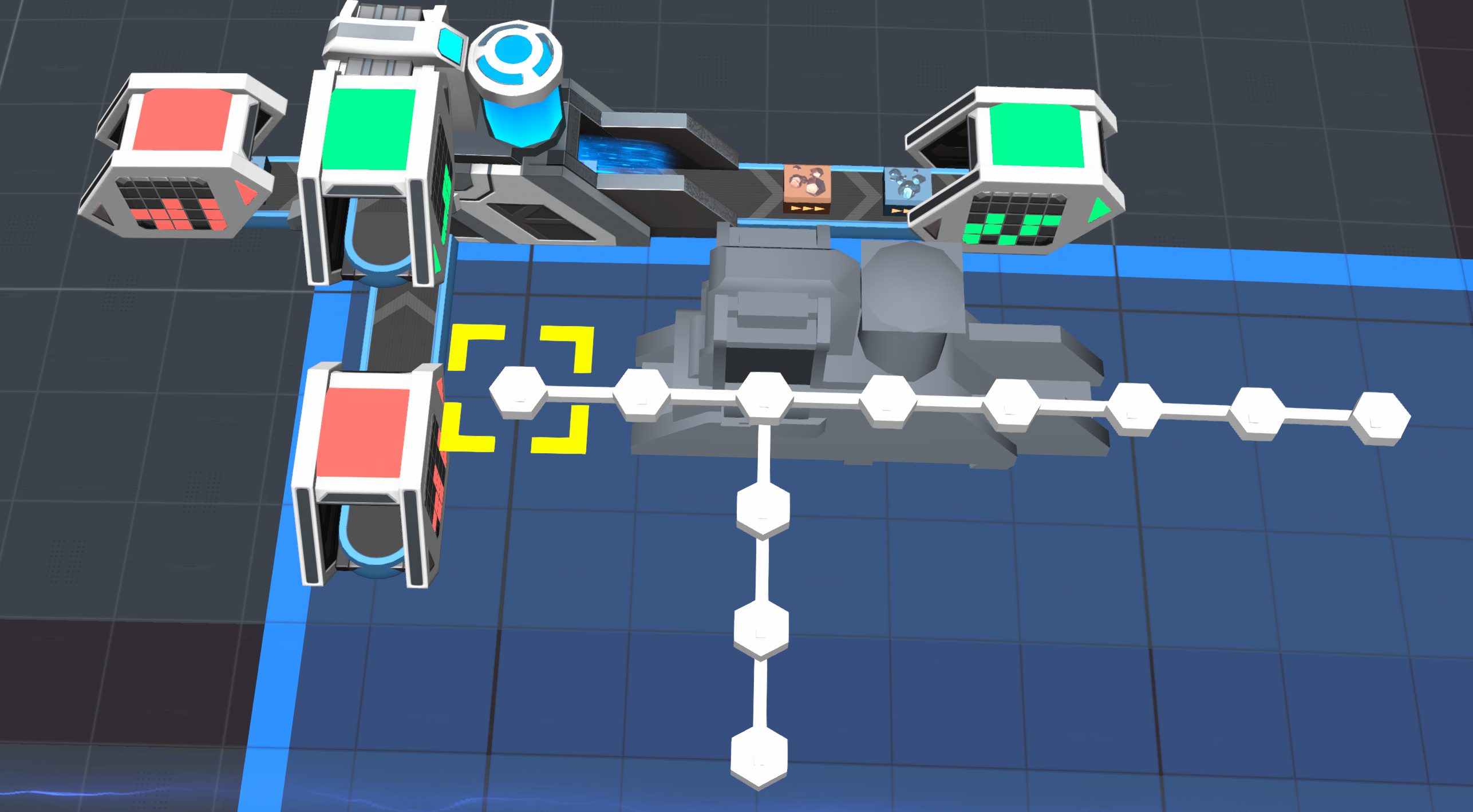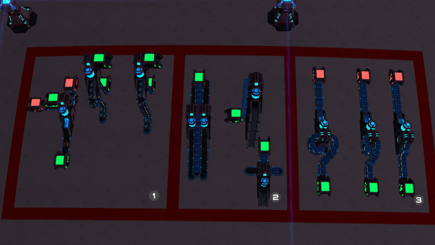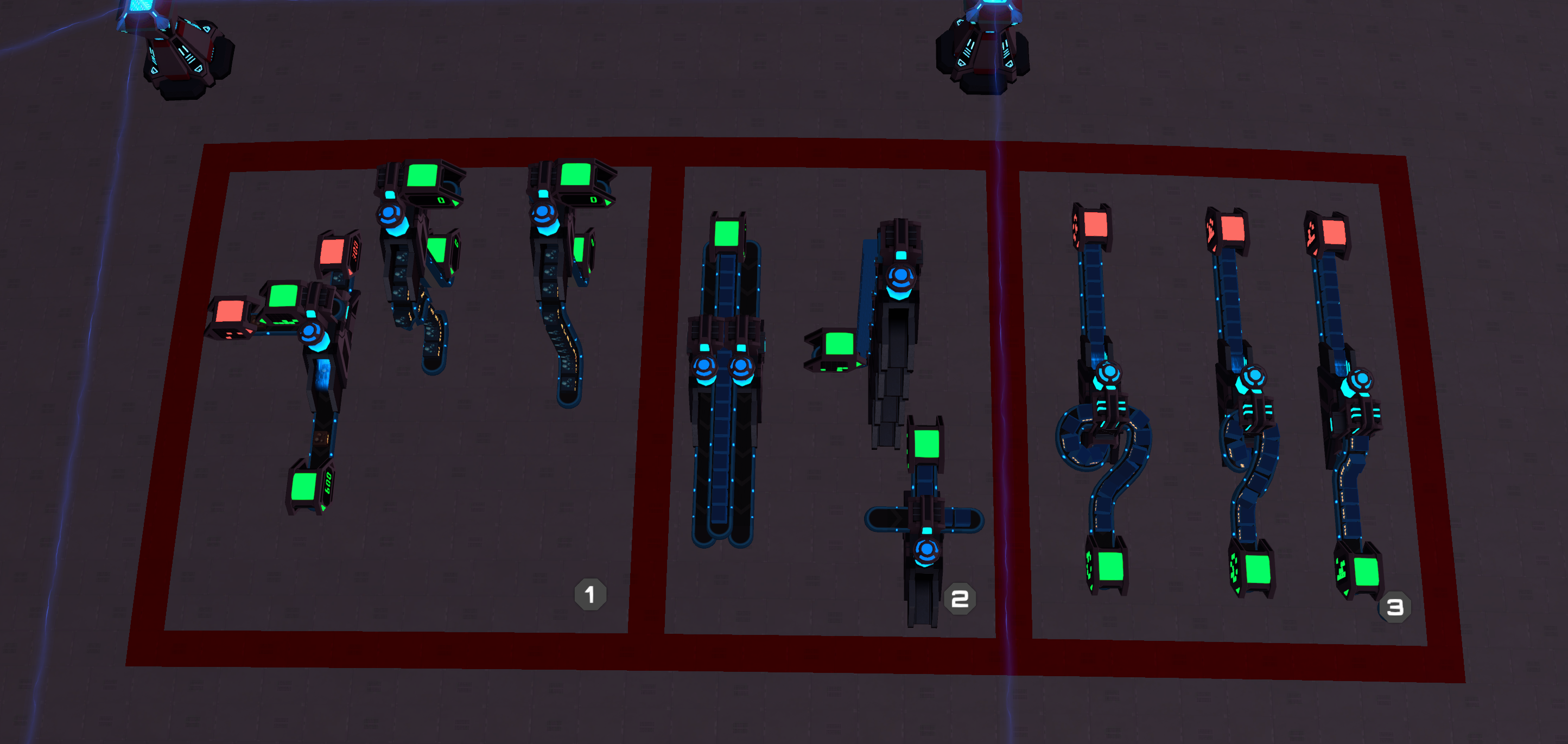 In the third part of the blueprint. There are 2 simple self-sprayers where I have only used normally pasted belts. And a third that is fully inline using the clipping methods described above plus some belt dot bending.