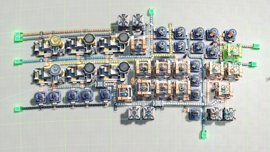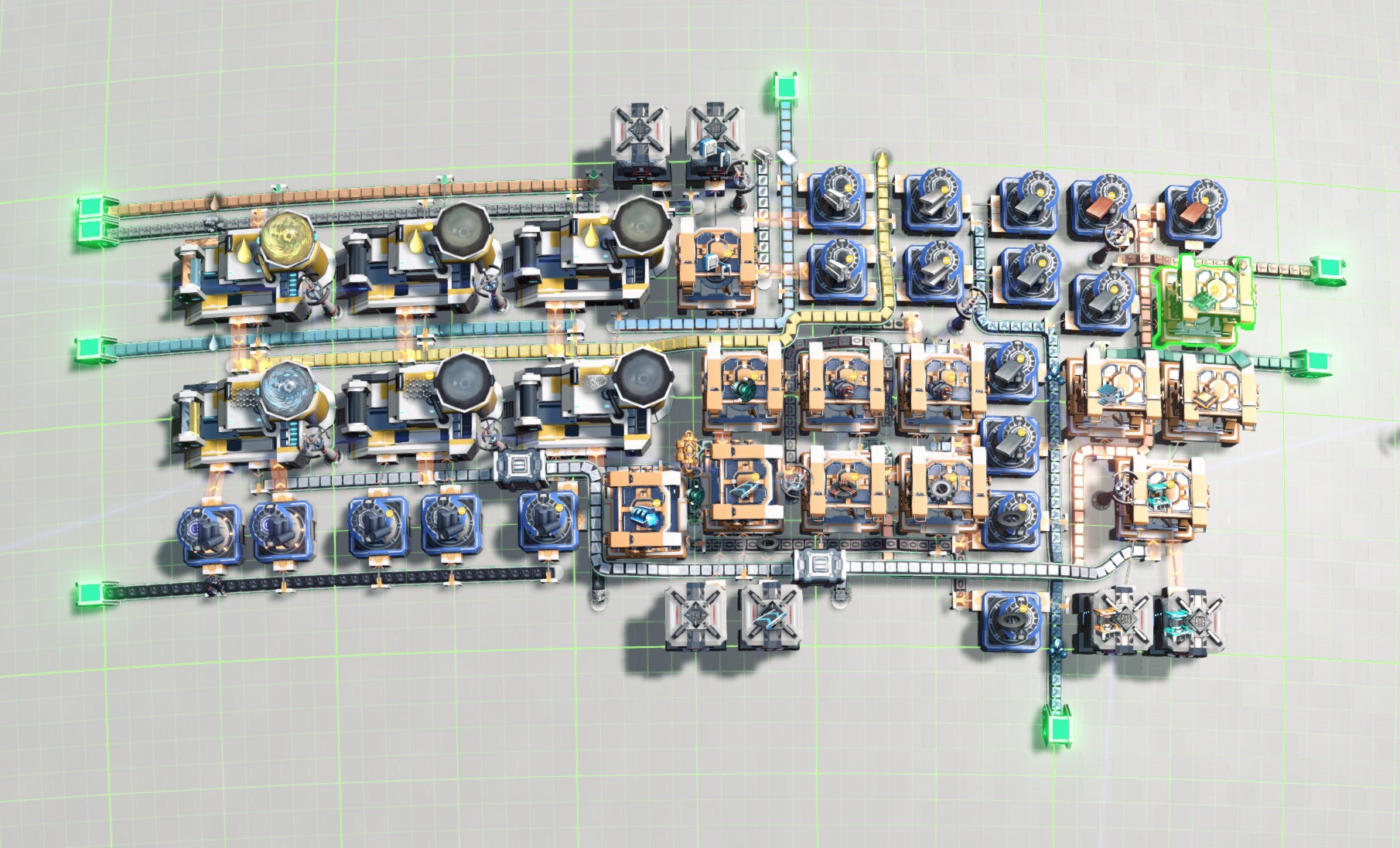 This blueprint will produce items of the early game headaches like Acid, Titanium Alloy, Graphene, Nanotube, T3 Belt & T2 Assembling Machines. You will need T2 belts and T1 assembling machines to upgrade them to T3 belt and T2 assembling machines. The distributers were pre-configured to request them. For early game mall that produces T2 belts, T1 assembling machines and distributers and drones under 300 units, please take a look at this early game temporary mall: https://www.dysonsphereblueprints.com/blueprints/factory-quick-start-step-2-launchpad-mall