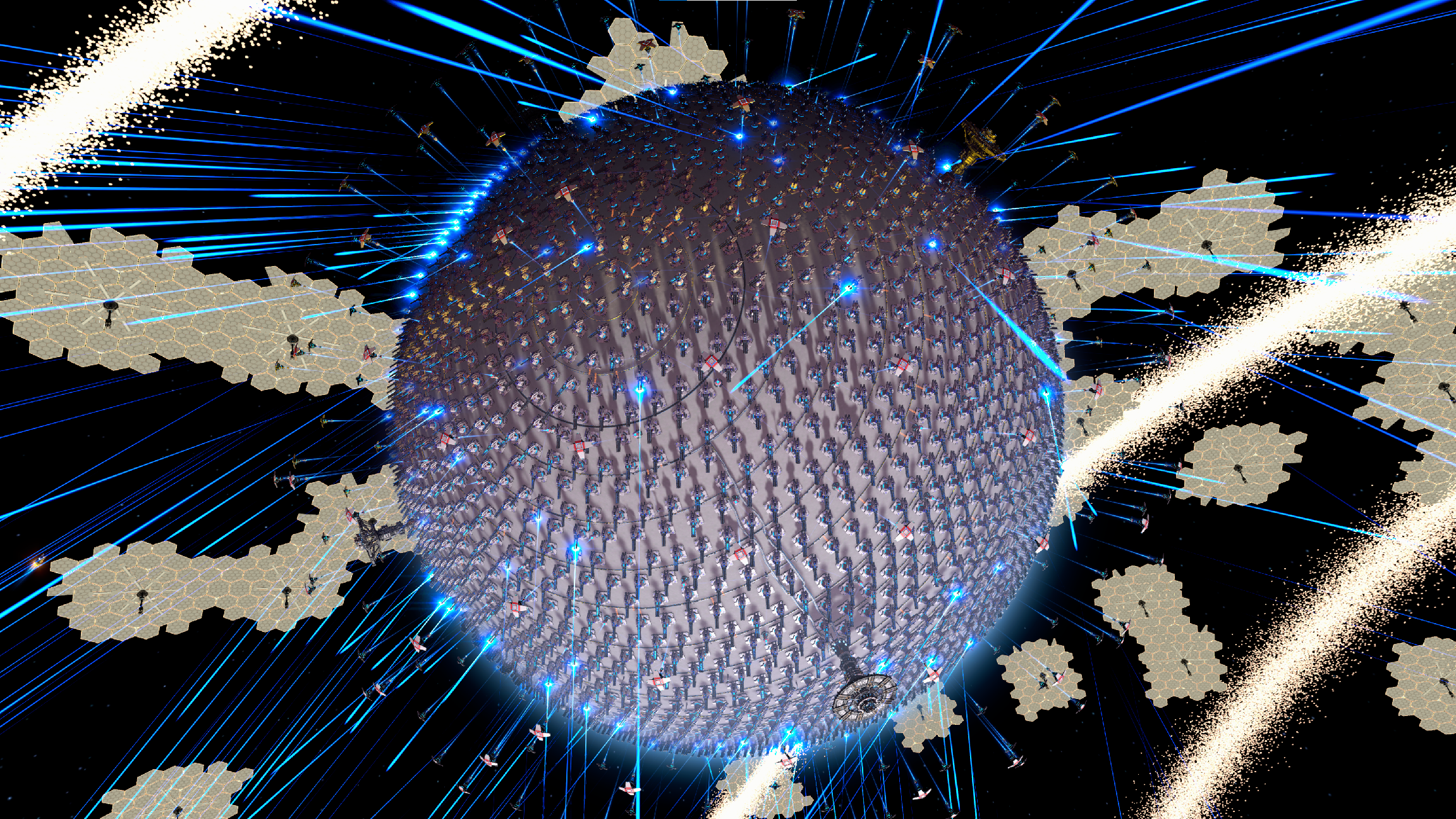 Import: proliferated strange rods and proliferated solar sails Shoots: ~140k/m solar sails maximally, depending on planet and swarm orbits Power: 16 GW