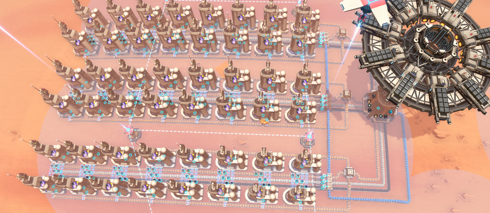Running out of refined oil for plastic to use in mass broadband production? 48 refineries looping to create more should help. Manually prime each line with a little refined oil to start the loop. Starts producing fully once the input belt is full. Demands external coal and hydrogen from near and far. Fully proliferated for speed (only option).