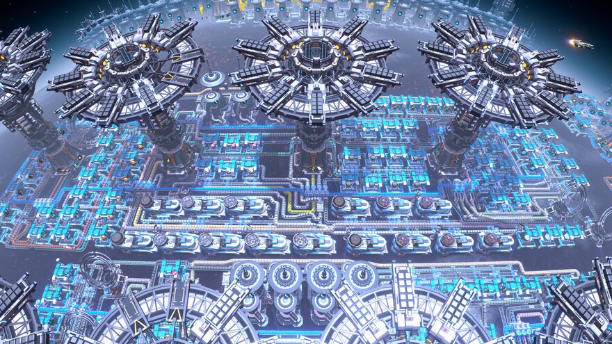 Sucks in smelted ores and raw products, plus antimatter rods, proliferator and warpers. Spits out Small Carrier Rockets. Internally self-powered, can operate in total isolation from other builds - just dump a stack of Antimatter into one of the suns to boot it up. Search for "Endgame Factory" to see other similar builds.