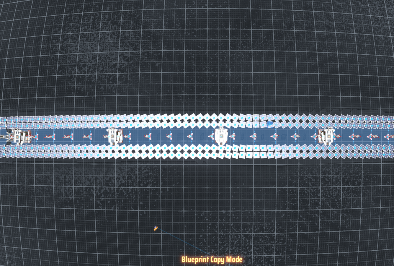 Galactic Scale makes blueprinting a hassle, as the varying world sizes make most whole planet blueprints fail due to scale issues. This blueprint is a tileable chunk of a self-assembling Shield + Power ring for taking over and protecting planets. Planet scale variety wont impact it, as you just paste more or less copies depending on how big the planet is. Ring the equator, then add 1 shield to each pole, and your planet will be secure.