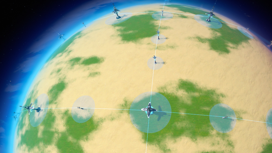 Covers the entire planet in Signal Towers, connected by Tesla Towers and Wireless Tesla Towers. Tested repeatedly - the towers have enough overlap to cover the entire planet. Place this down along with some missile turrets, and they will automatically destroy any new Dark Fog bases that land. No need to worry about new bases forming. Also provides a useful power grid!