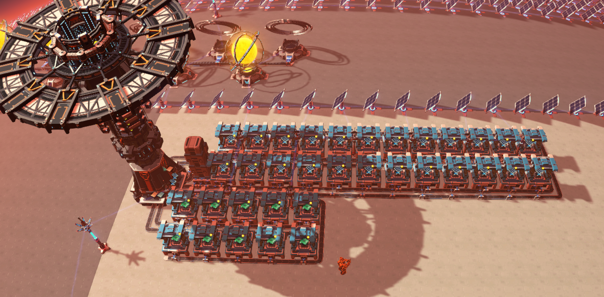 Produces 6 Solar Panels per second that can be requested from anywhere, lacks logistics distributor Consumes 75 Copper, 30 Iron, 60 Silicon per second Designed around 30/s Circuit Board production(1 MK.III Belt)