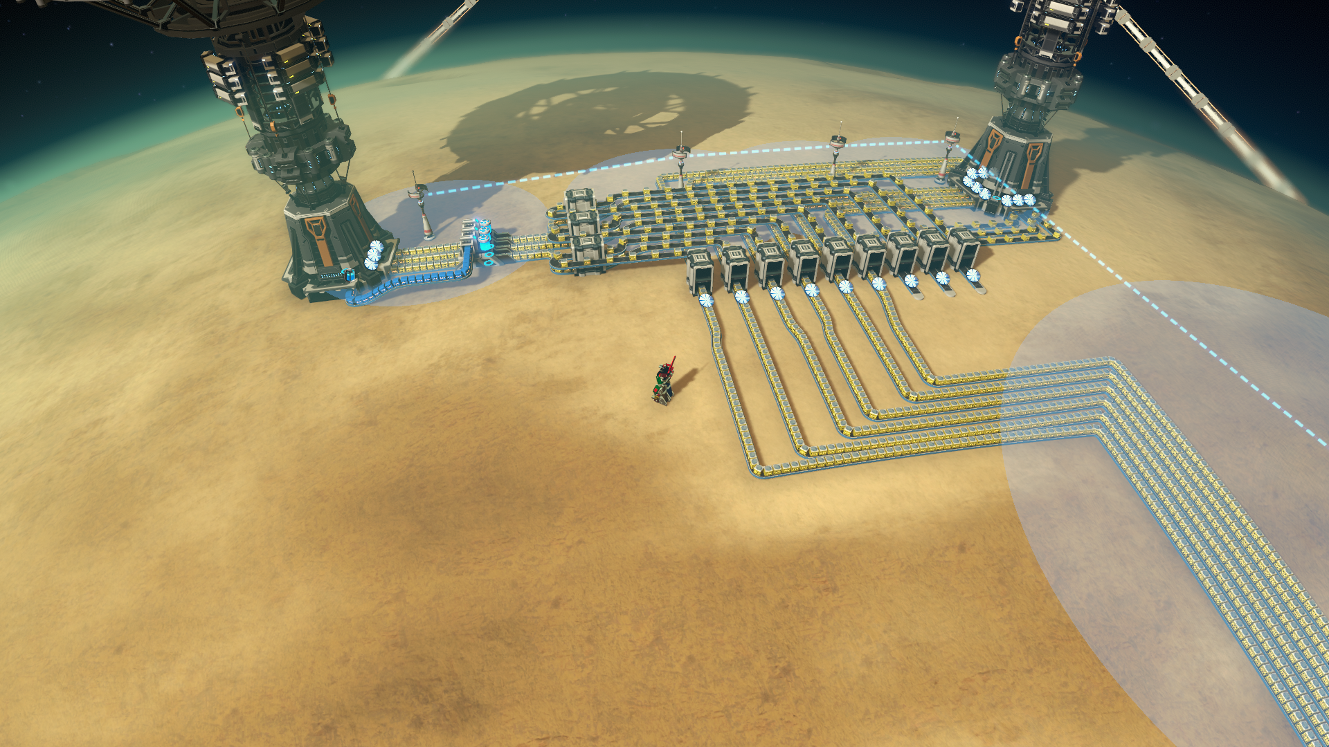 Accept up to 9 full belts of manufactured solar sails (4-stack each, if you have the tower tech on you solar sail production) Store 20,000 solar sails, plus what is on the belts for distribution off planet Retrieval capacity of 20,000 additional sails, as designed Priorities to use retrieved sails first. All incoming sails are proliferated, if necessary. Minimal unnecessary manufacturing. Additional towers can be added at both the dispense and retrieval sides, for storage expandability