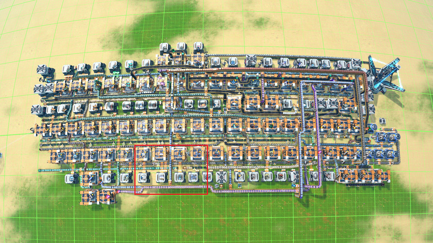 This mall will make everything important for a Dark Fog combat speedrun with a TINY footprint by giving you the buildings in the order you need them. It follows all of the new (vanilla) belt slope rules, as it only starts using vertical belts once you start placing factories requiring yellow science and already have the Supermagnetic Ring technology that allows it.