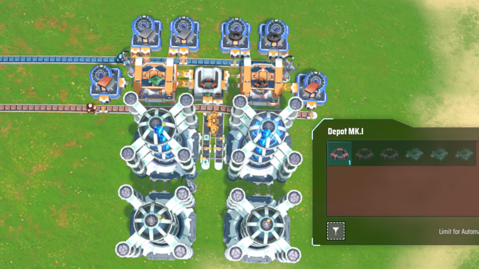Input: 4 Iron Ore per second (1 mining machine covering 8 veins). Input: 2 Copper Ore per second (1 mining machine covering 4 veins). Output: Magnetic Coils & Circuit Boards for Blue Science Good starter blueprint to build manually early on in the game to assist with production and science research. Reserve spaces in the storage box for 3 Magnetic Coils & 3 Circuit Boards, and restrict the remaining open slots. You can start with just 6 Matrix Labs, and then double it to 12 to scale up.
