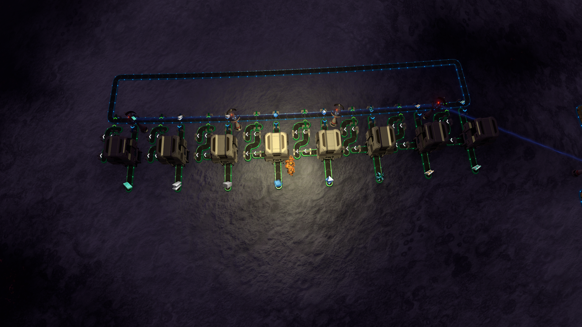 Stacked sushi belt. Stacks are 4 items high. No overflow.