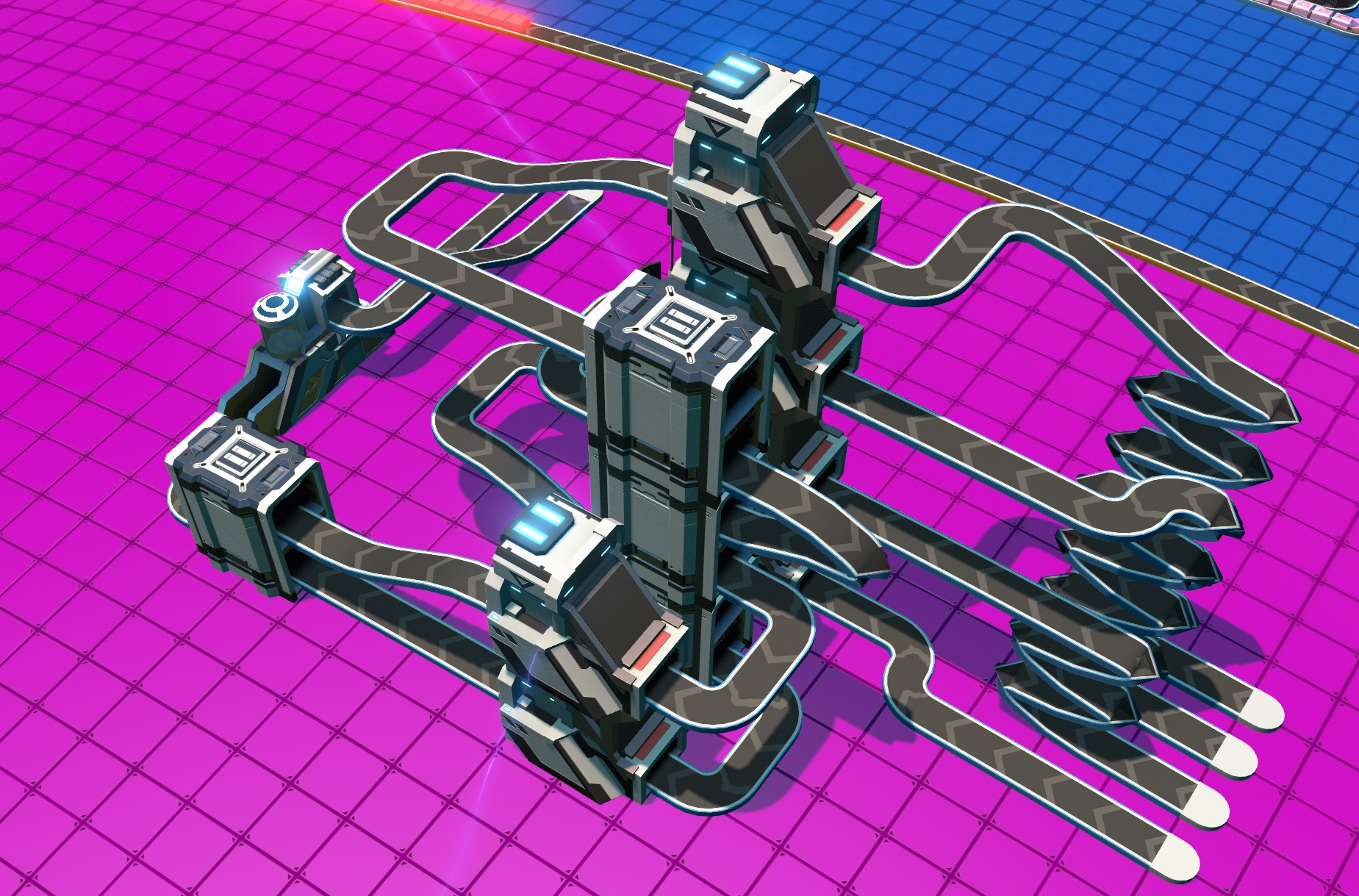 This will take 4 output lines from production and make a 4 stack on a single output and spray it. It could use some refining.